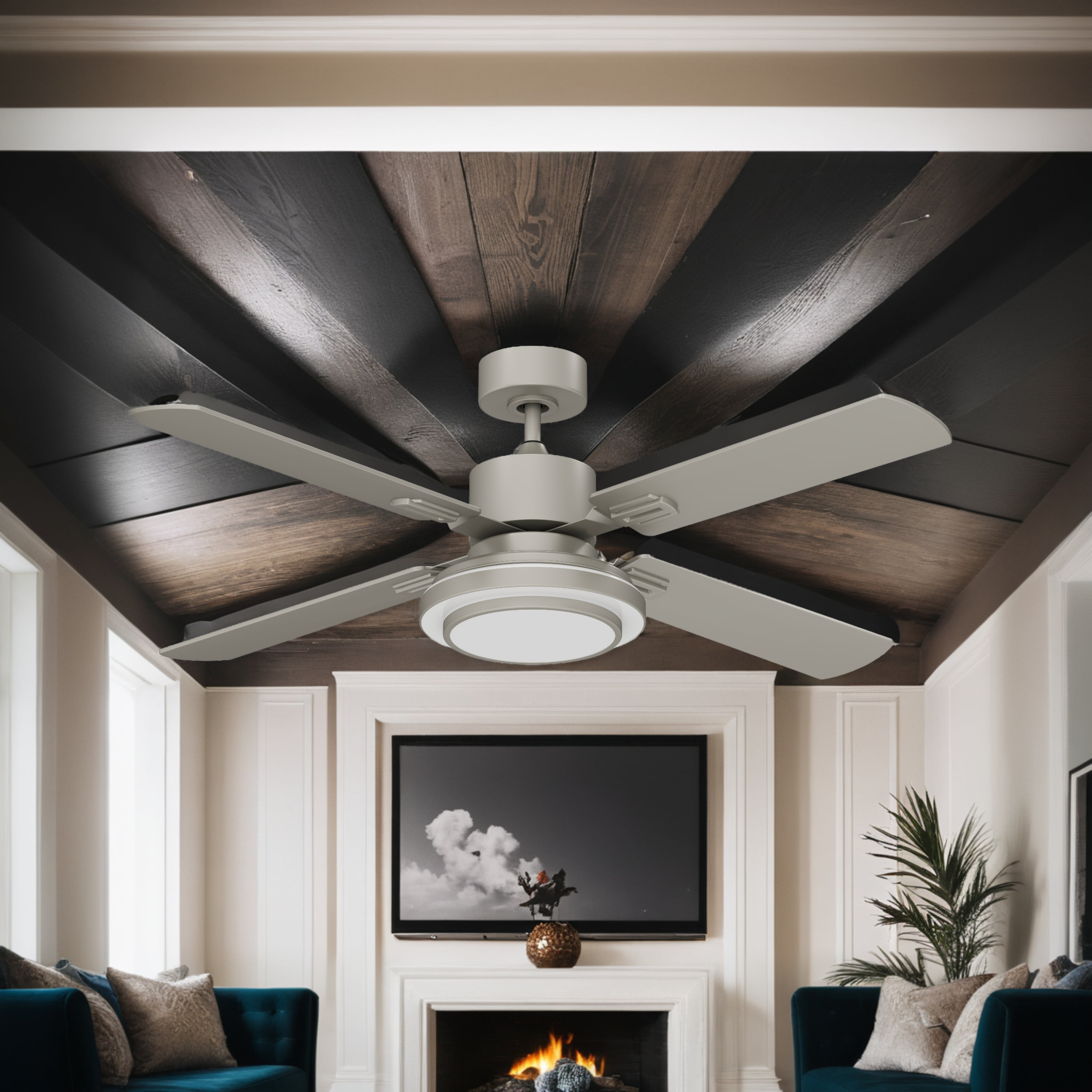 Progress Lighting Bedwin 4-Light Ceiling Fan, Galvanized Steel, Grey Weathered Wood Blades, Rustic Lattice Design