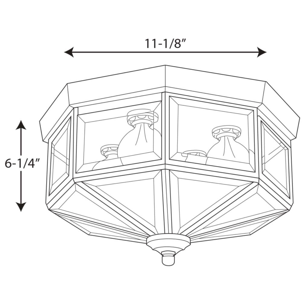 Create a décor look you love with the Beveled Glass Collection’s Three-Light Close-to-Ceiling light fixture. A stunning octagonal frame is coated in a breathtaking brushed nickel finish. The frame is constructed from a solid brass material for a design that is both beautiful and long-lasting. Clear beveled glass panes in square and triangular shapes with silver borders join for a dazzling shade reading to offer ambient overhead lighting. Within the shade are small, simple light bases attached to the gray ceiling plate. A decorative silver knob punctuates the bottom of the shade for a final exclamation of sophisticated styling. For ideal illumination, the light fixture uses three candelabra base bulbs that are sold separately (25w max – LED, CFL, halogen, or incandescent). With the ability to be fully dimmable with dimmable bulbs and having the ability to be installed in damp locations, this ceiling light offers versatility when it comes to finding a place in your home décor vision. It’s time to breathe new life into the mundane every day with timeless and truly transformative lighting. Make your purchase today to begin your journey to a whole new lighting experience. Progress Lighting products are designed for exceptional quality, reliability, and functionality.