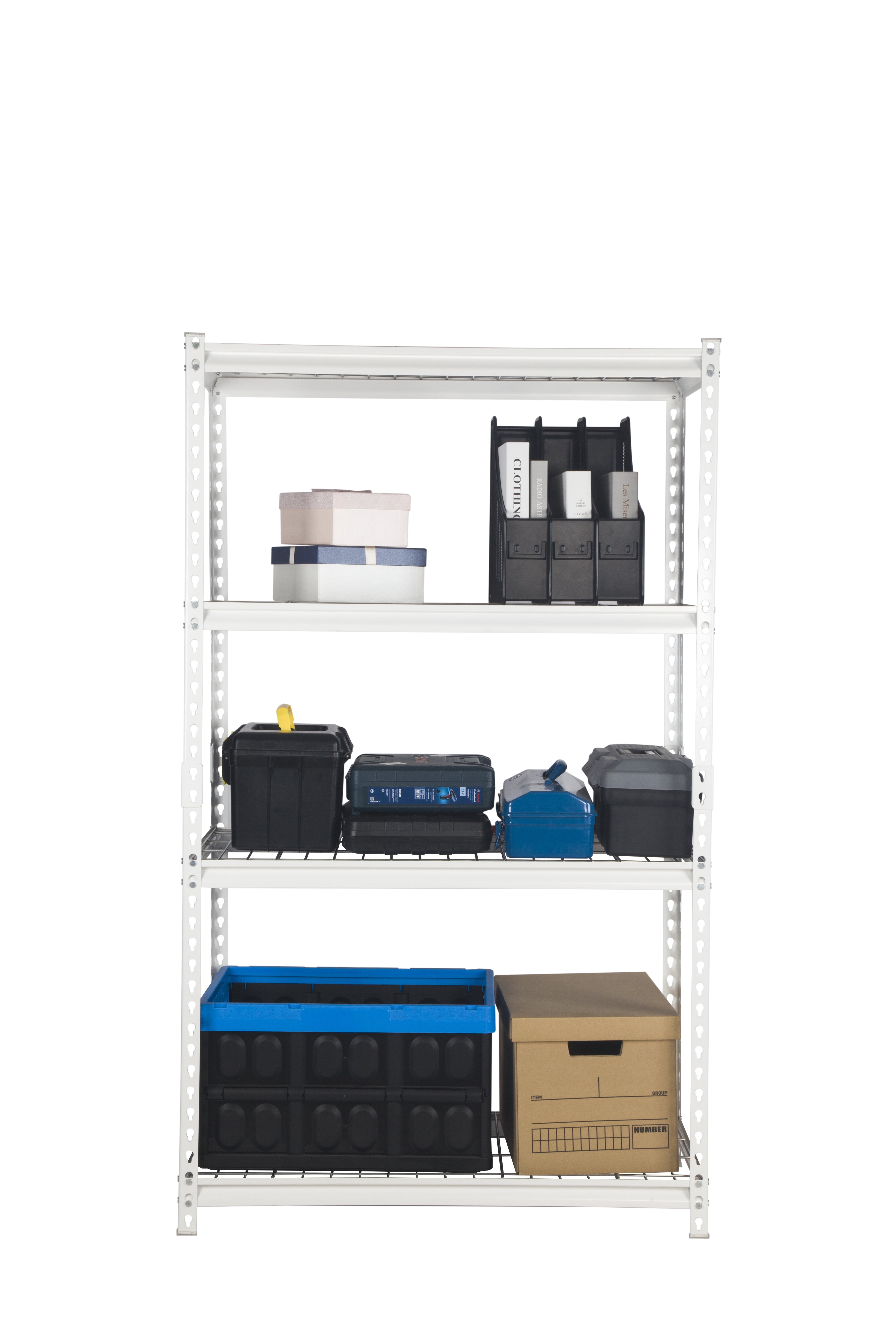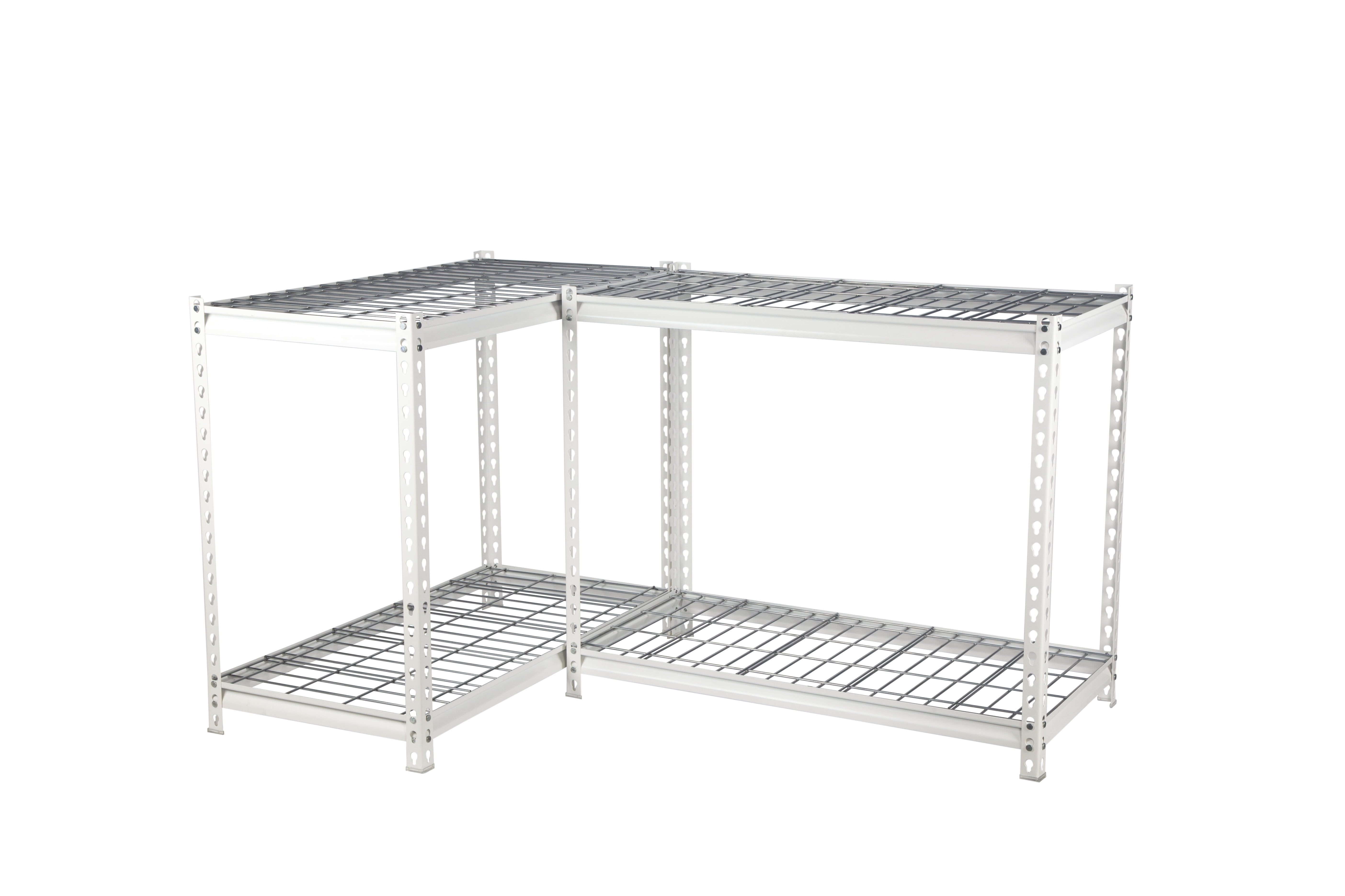 Sturdy steel frame and wire deck can withstand heavy objects Boltless structure for quick installation and dismantling Can be built vertically as a shelving unit or horizontally as a workbench These metal shelves are perfect for garage tools, household items, cleaning supplies, filing and office supplies, pantry items, seasonal items and much more.