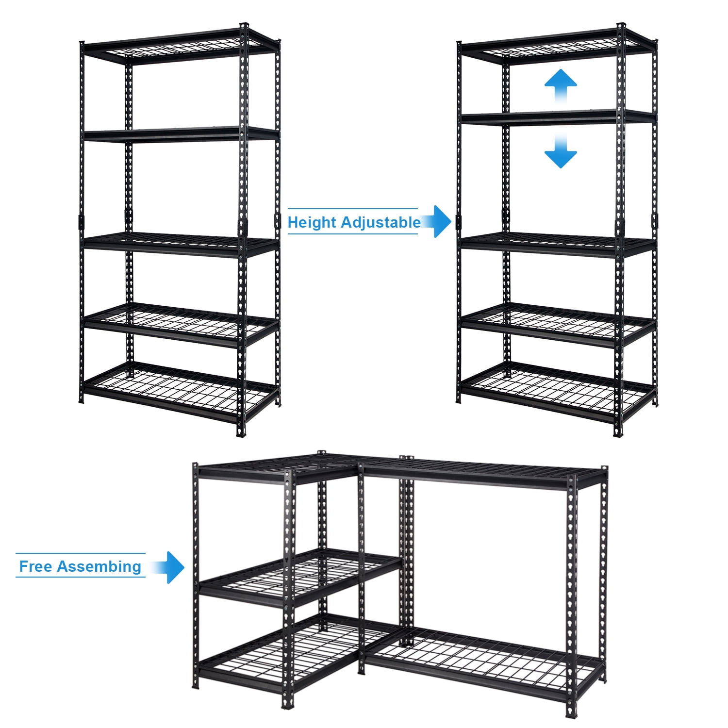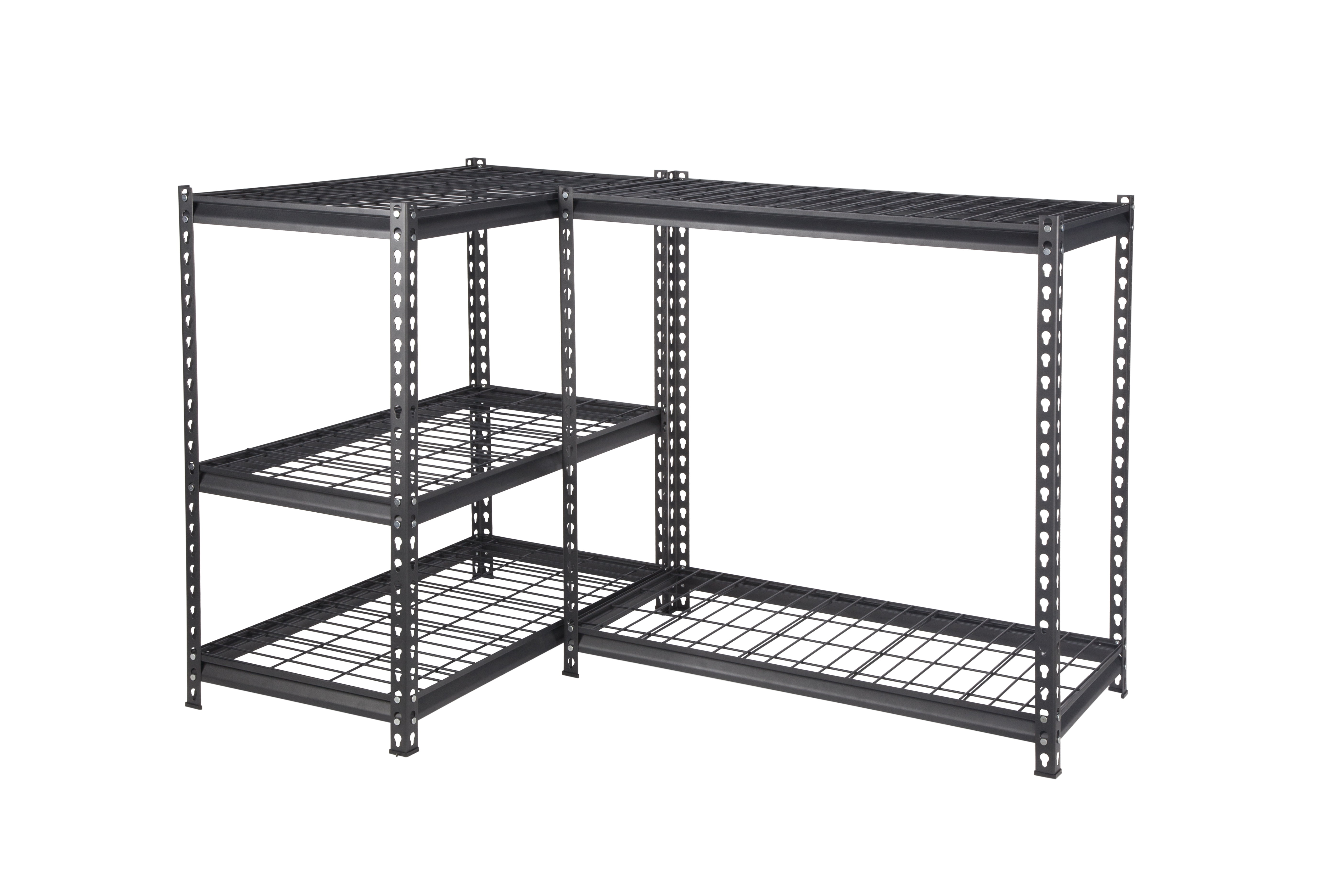 Sturdy steel frame and wire decking can withstand heavy objects Boltless structure for quick installation and dismantling Can be built vertically as a shelving unit or horizontally as a workbench These metal shelves are perfect for garage tools, household items, cleaning supplies, filing and office supplies, pantry items, seasonal items and much more.
