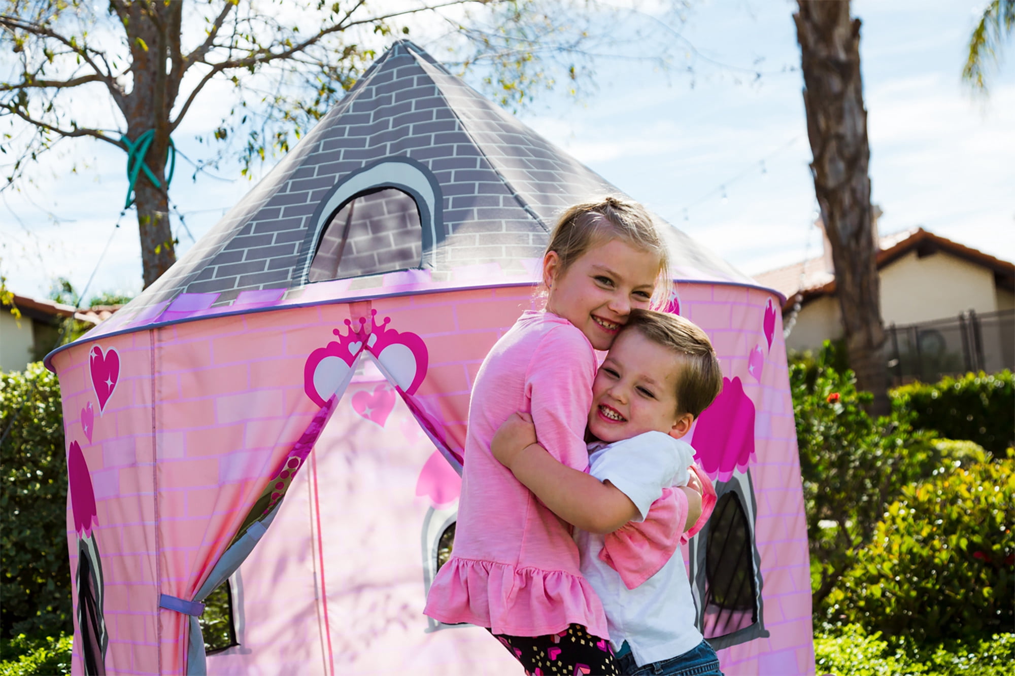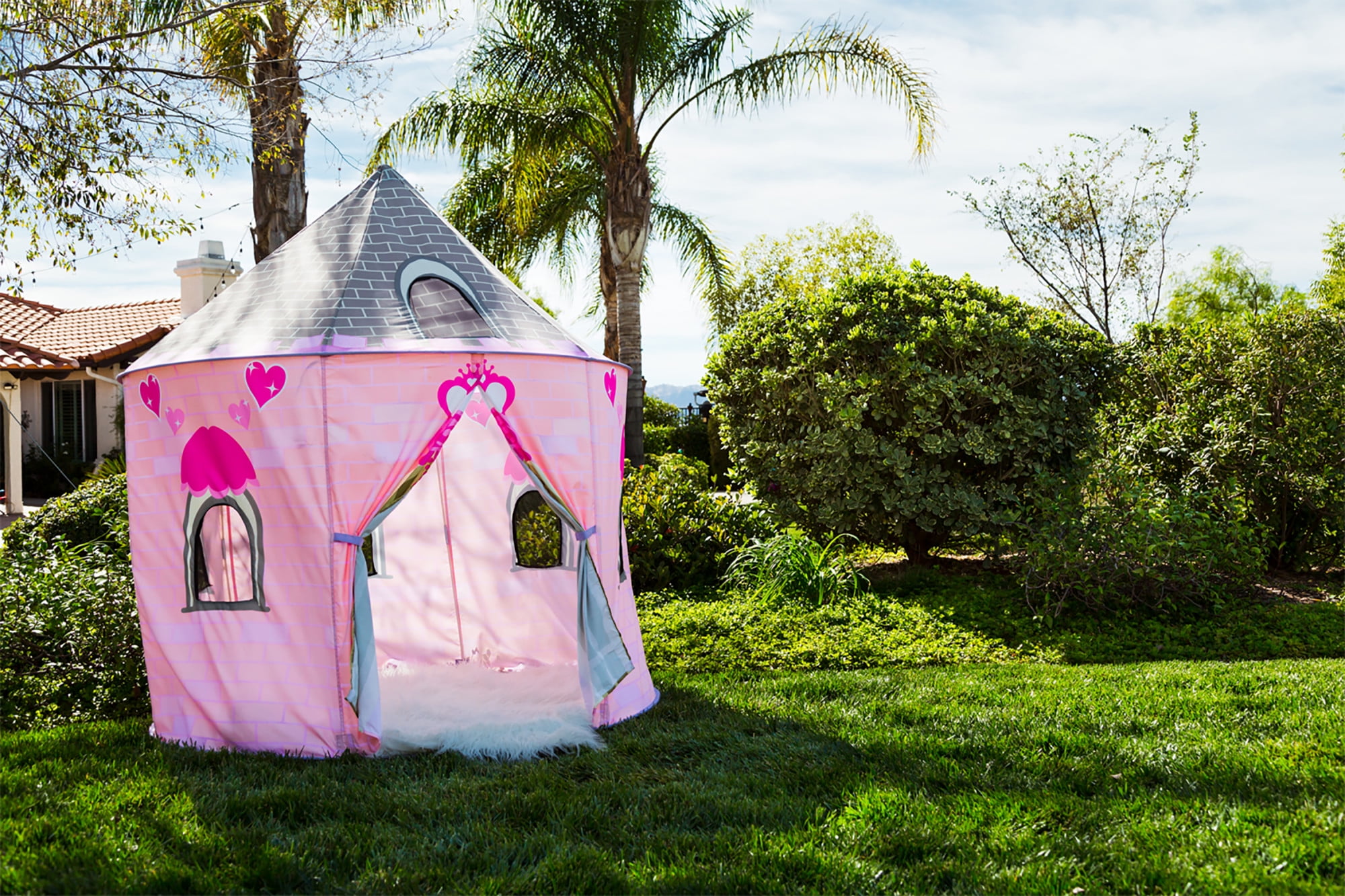Every princess should have her own castle, and it’s time to start having your little lady’s mail forwarded to the Pacific Play Tents Princess Castle Pavilion This fun, hexagonal castle features an exterior of flame-retardant polyester on a lightweight frame The design allows for more interior playroom where her highness can stand up inside