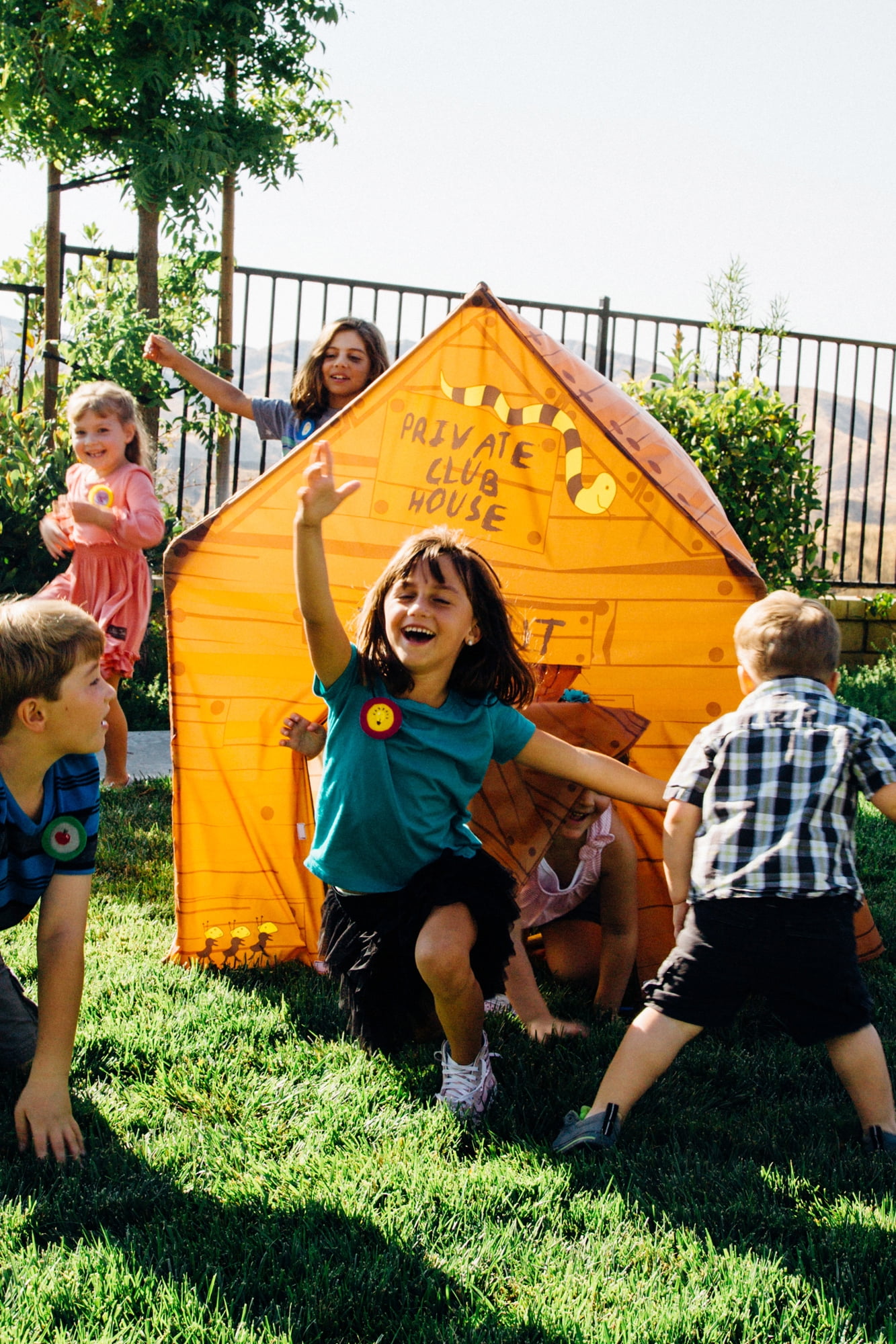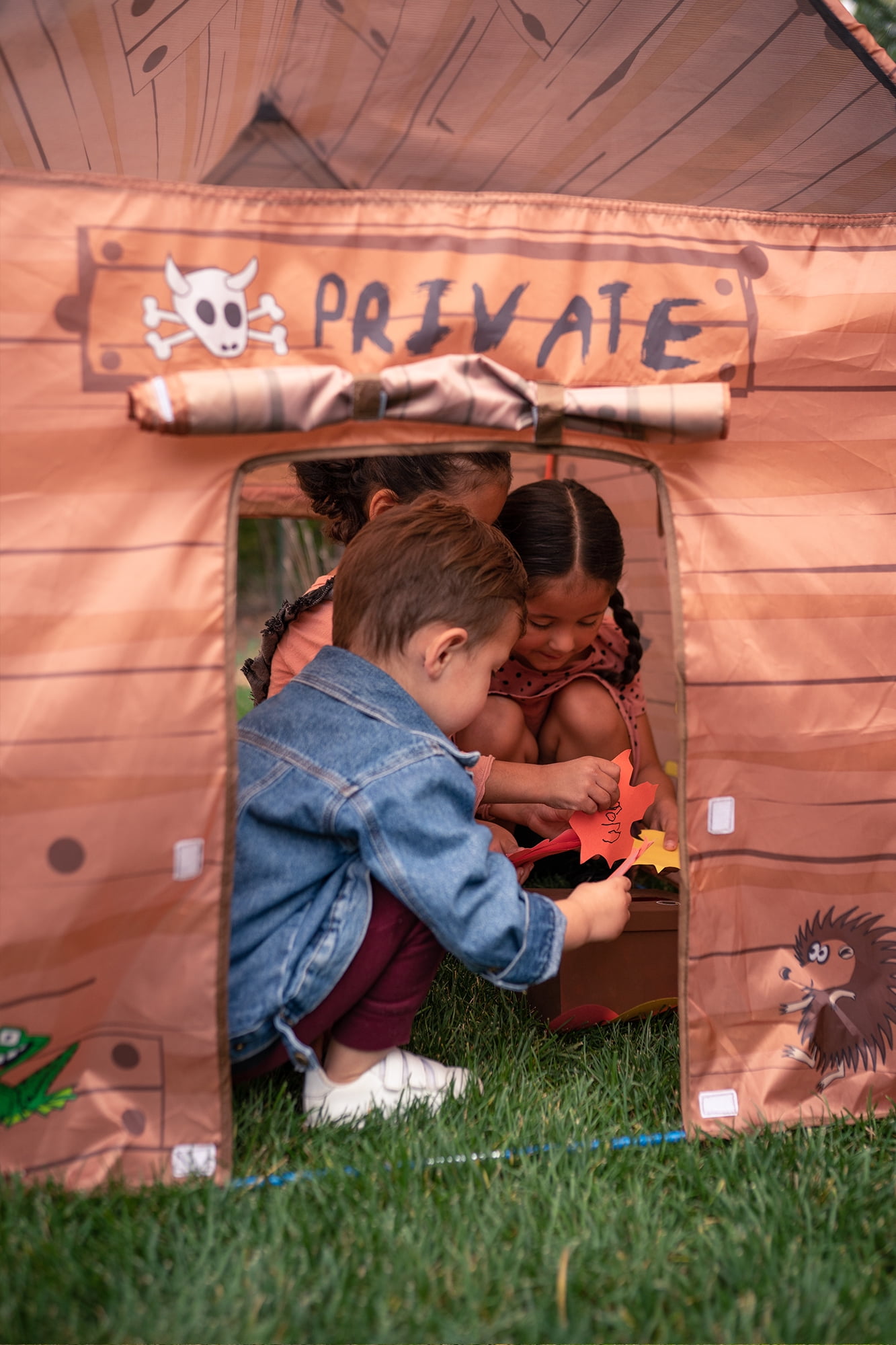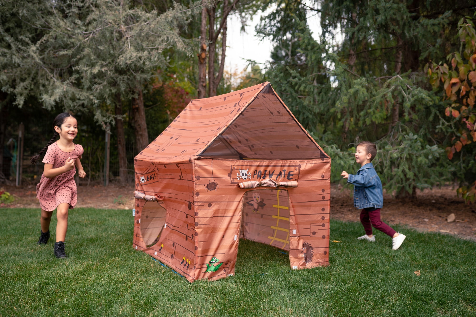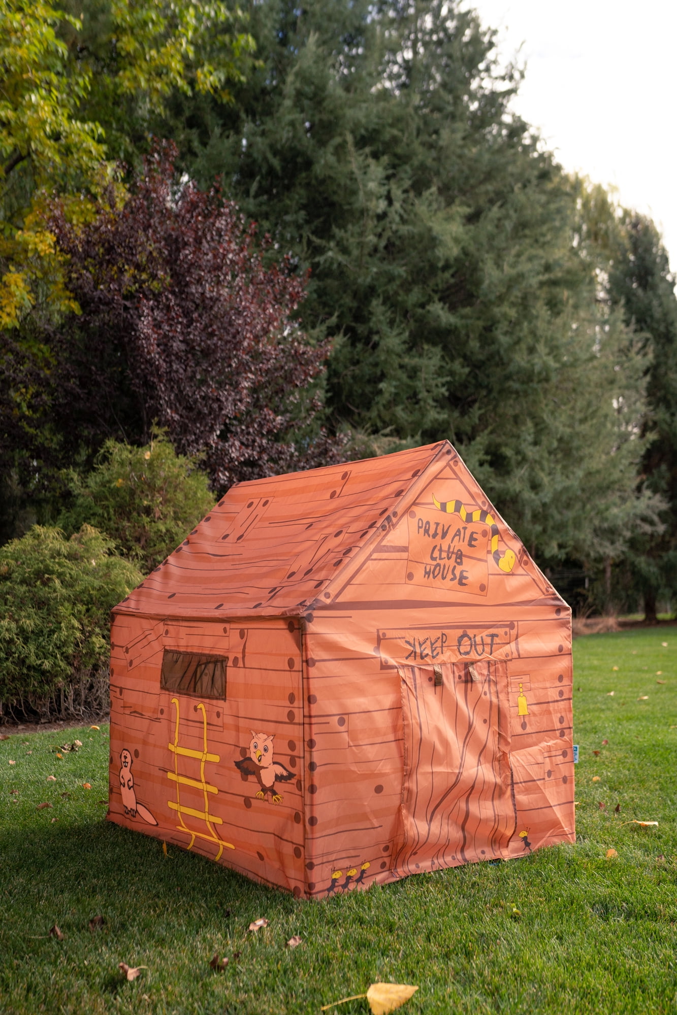 Your child can have a secret hideaway with the Brown Club House Tent. This life-like play house tent comes complete with secret windows and doors, so children can escape at any time. Tucked away in this tent, children can pretend they are up in the trees or in a secret hiding place. “Keep Out” is clearly posted to let unwanted people know they can’t come in. Or, children can invite others to come in through the special entrance. The space is big enough for the entire club and all its secret meetings. This club house includes a carry bag, so your child can take it on the go. The kid’s tent house uses sturdy PU-coated, shock-corded poles for ease of assembly. Mesh panels and windows are included as are tunnel ports with roll-up flaps. When not in use, the Brown Club House Tent is easy to clean and maintain so it can be reused for the next adventure.