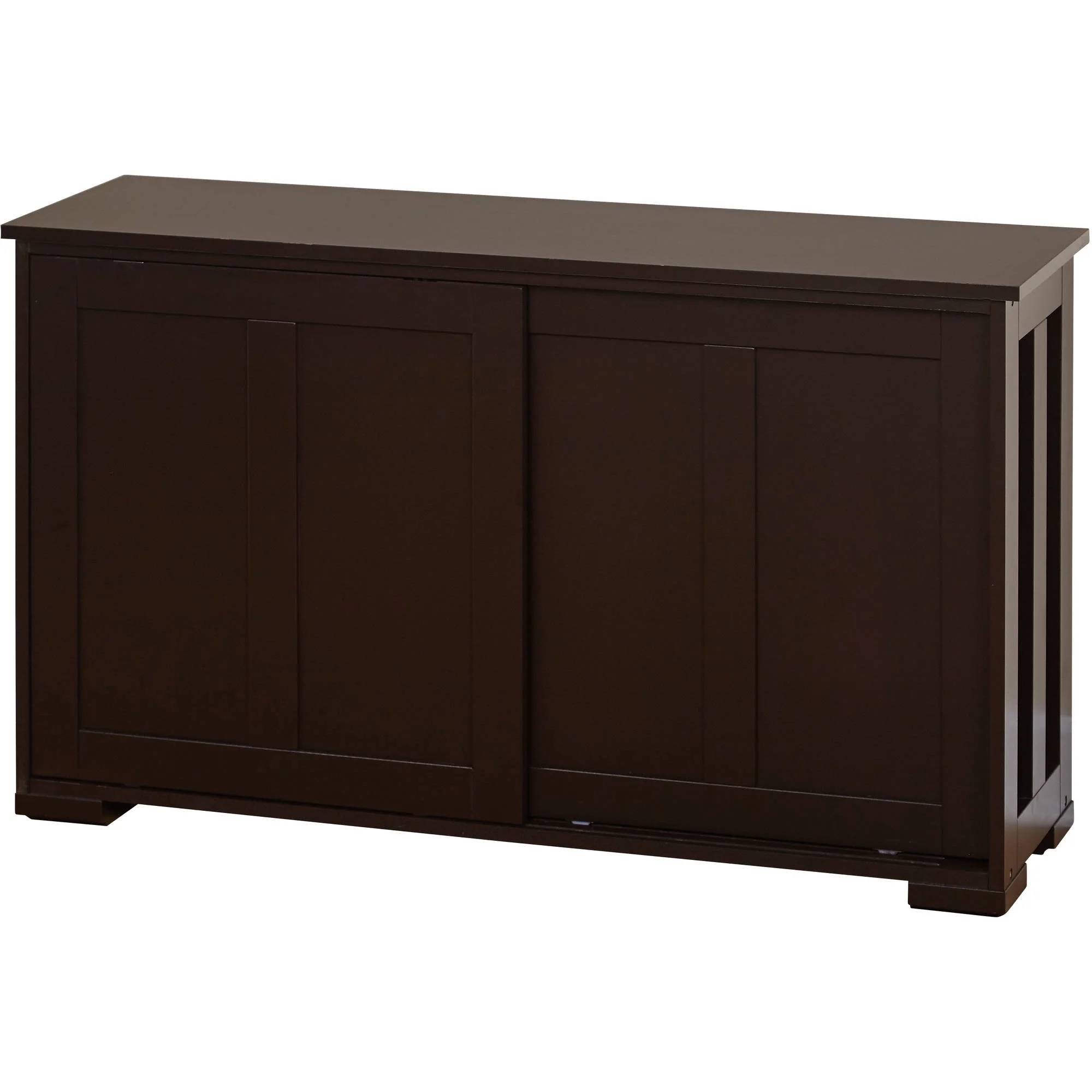 TMS Sliding Wood Doors Stackable Buffet Storage Cabinet, Brown Two Sliding doors One adjustable shelf Finish: Antique White, Espresso Wood dowels included for stacking option Material: Particle board, MDF Frame Requires some assembly