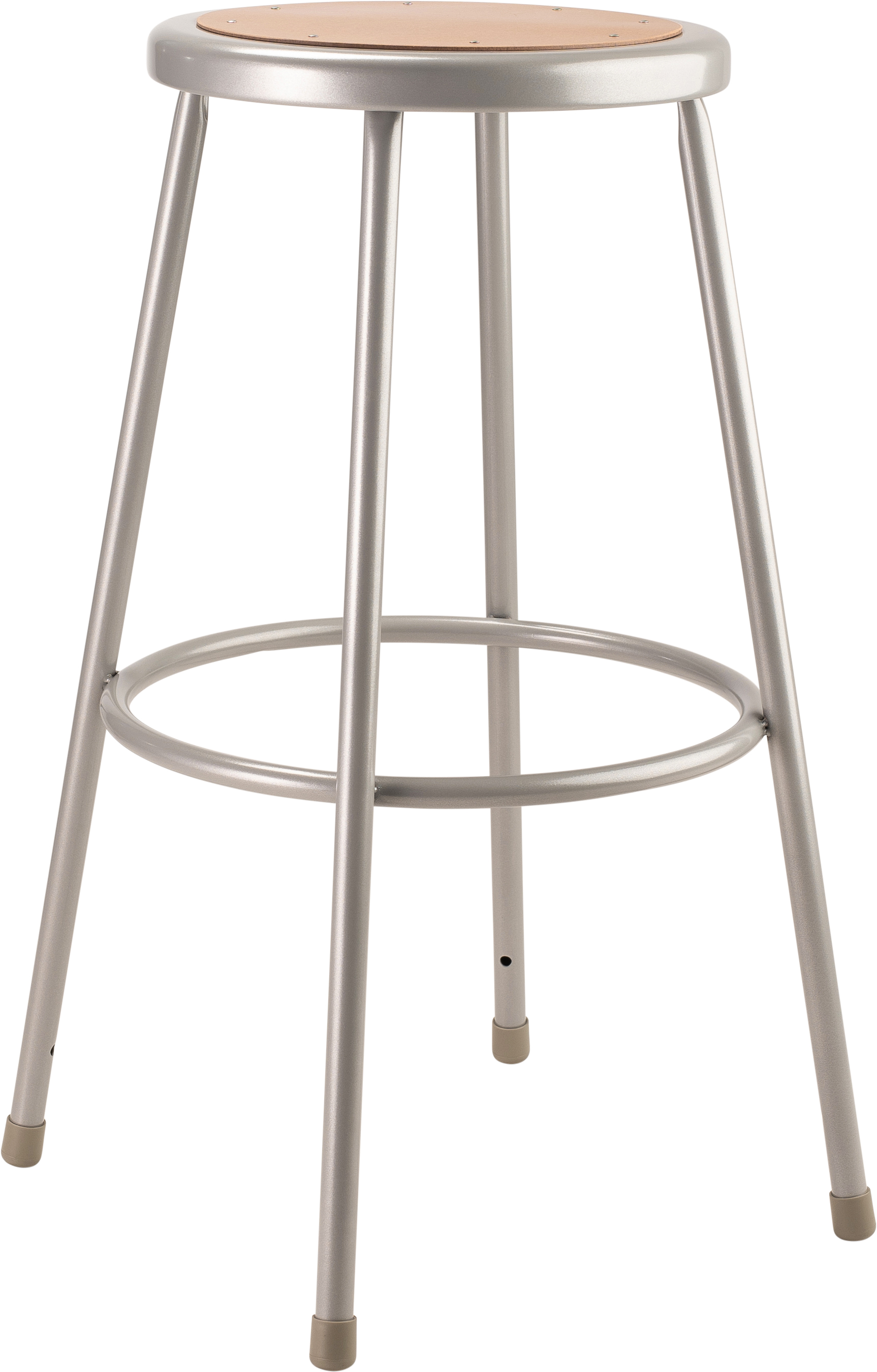 The durable construction and classic design of the NPS grey 6200 Series heavy-duty stools are ideal for hands-on educational settings like art rooms, science labs, home economics or shop classrooms. These reliable stools feature a strong frame of 18-gauge steel tubing securely welded to a 14 inch diameter seat pan. Riveted to the pan are firm, round Masonite seats that will not warp, chip or crack as they provide years of dependable use. Footrest rings are securely bonded to each leg with four contact points.