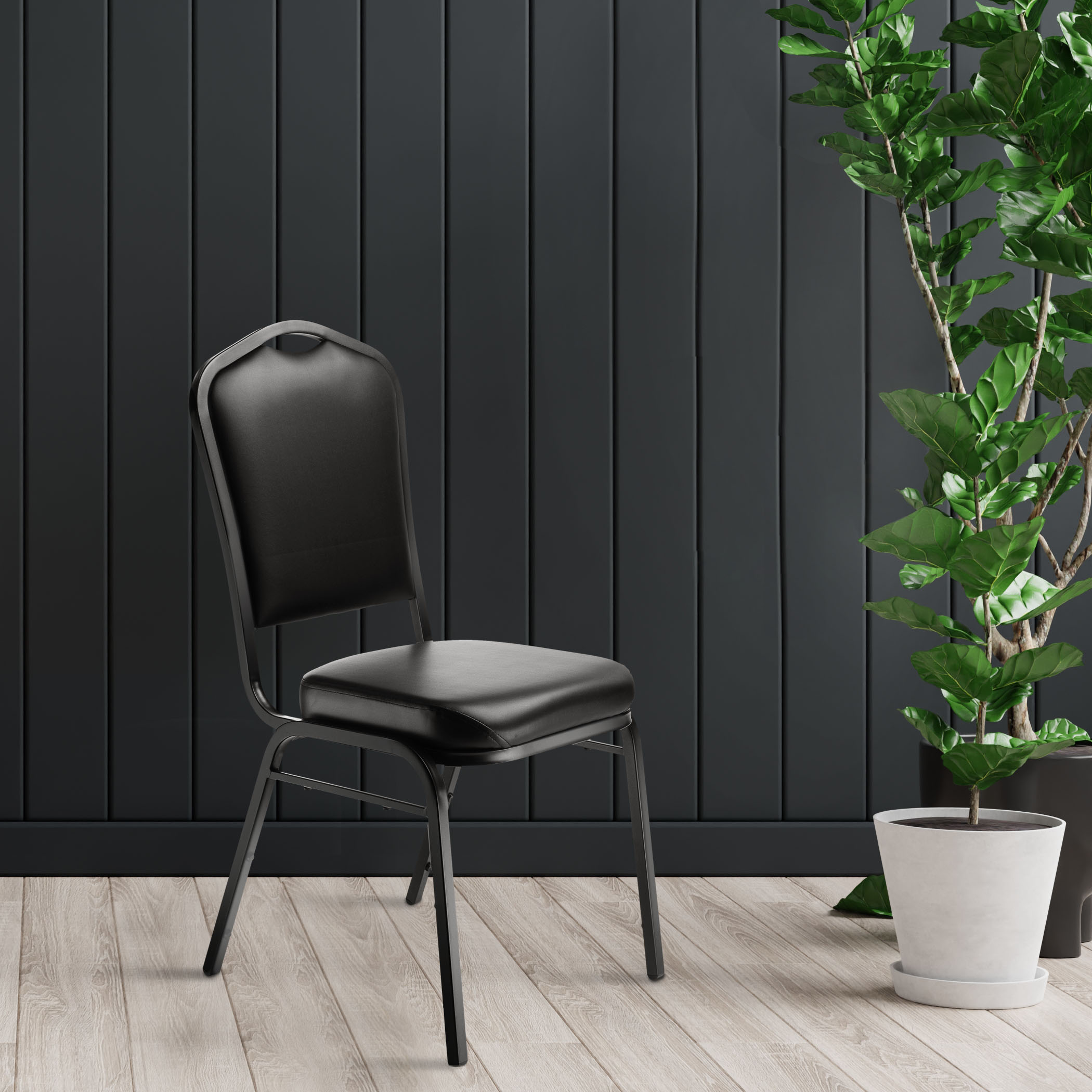 (Pack of 2) NPS® 9300 Series Deluxe Vinyl Upholstered Stack Chair, Panther Black