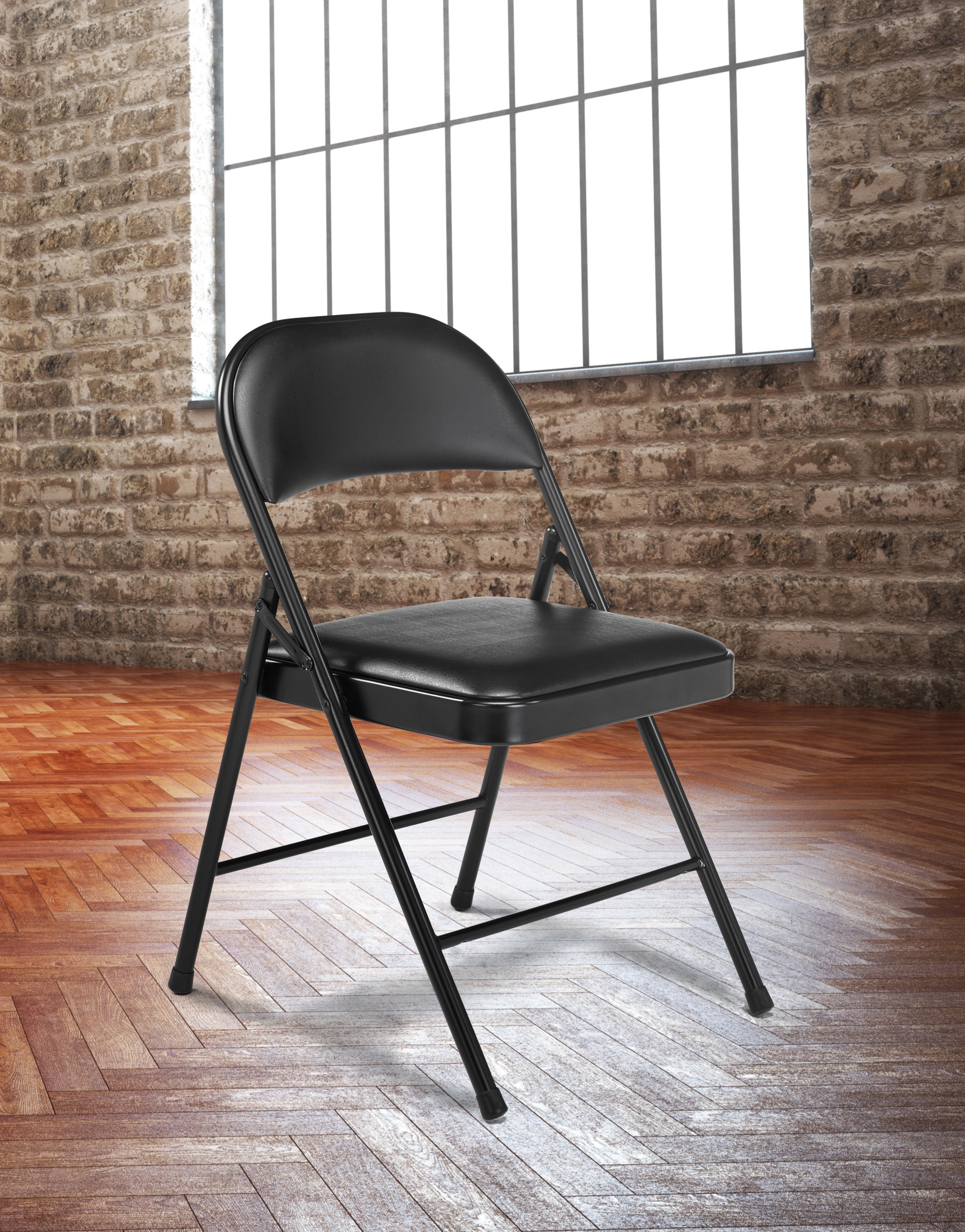 (Pack of 4) Commercialine® 900 Series Vinyl Padded Steel Folding Chair, Black