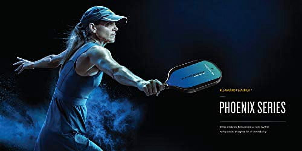 The Swing With the Sting – Light enough for quick reactions at the kitchen but powerful enough to drive the ball with authority. The Paddletek Phoenix G6 offers a large sweet spot for accuracy and ball control. PolyCore interior with embedded graphite layer dampens vibration and sound for comfortable play, increased ball control and touch. Durable velvet textured polycarbonate surface increases paddle life and improves ball spin and control. Specifications: Weight 7.8 – 8.1 ounces (Light/Standard) | Total Length 15 5/8 Inches | Width 7 3/4 Inches | Grip Length 5 Inches | Edgeguard 1/8 Inch Grip: Standard Size 4 ¼ Inch circumference Ultra Cushion High Tack Performance Grip