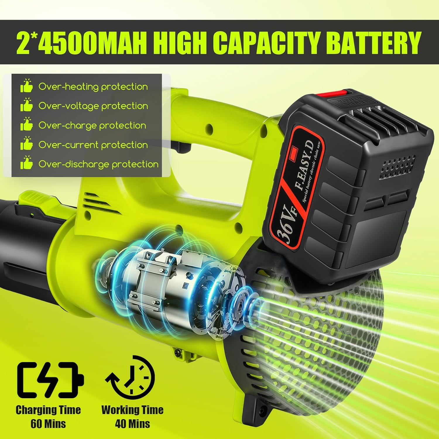 Paddsun Cordless Leaf Blower, 21V For Lawn Care Handheld Electric Leaf Blower Lightweight for Snow Blowing with 2 Batteries 4500mAh Lithium Battery and Charger