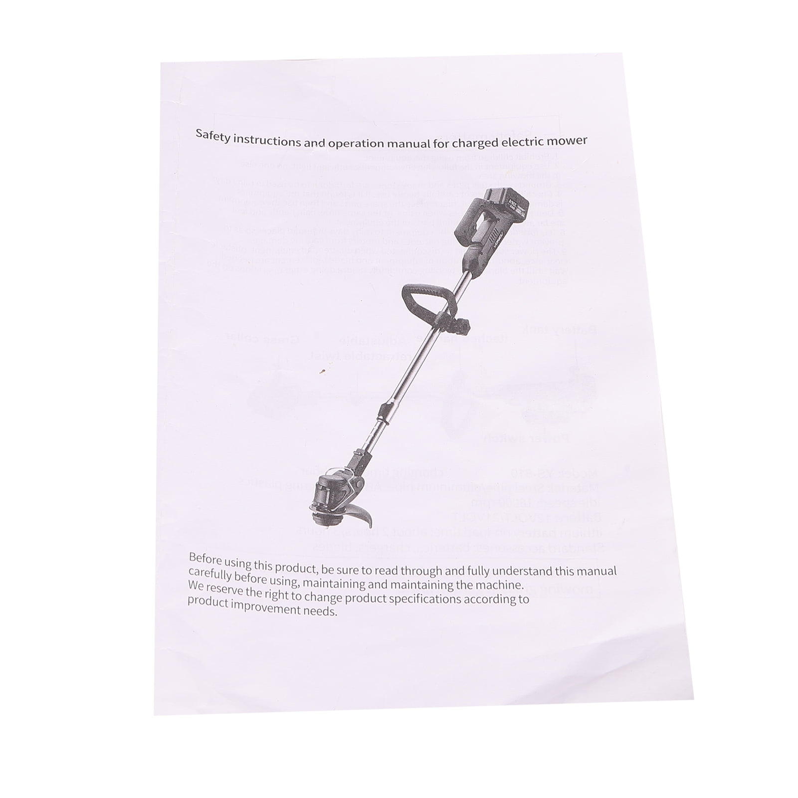 Features: 1. Sharktooth blade: exclusive design of non-sharpening blade, double-sided sharktooth blade, two sides of alternating cutting without cutting, cutting efficiency is higher; 2.72 hours long load no burning machine, strong pure copper motor, 18000 RPM, German low noise technology, low noise trimming; 3.1880W high power, strong power, light work is not tired, can easily partition shrubs; 4. Plastic blade, suitable for garden lawn trimming; Sharktooth alloy blade, suitable for weeds in complex terrain; Alloy saw blade, suitable for cutting crops and shrubs. 5. Large capacity battery, lasting battery life, two batteries can be used alternately to save charging time, do not delay the work progress. 6. The length of the fuselage can be adjusted, 1-30cm adjustable length, can be adjusted to the right height according to needs, without bending over to trim. 7. Anti-collision steel wire protective cover, reduce blade wear, extend service life. 8. The head can be adjusted 90 degrees, according to the need, a key to adjust the head, easy to solve the problem of dead Angle. Product name: Lithium mower Ldling speed: 18000/ min Ldle time: 2-3 hours Charging time: about 2 hours Product material: steel aluminum/plastic Packaging: 2 x Battery 1 x Chargers 1 x Alloy saw blades 5 x Nylon knife tips 2 x Sharktooth double-edged knives 1 x Dual protective gloves 1 x Instruction manual