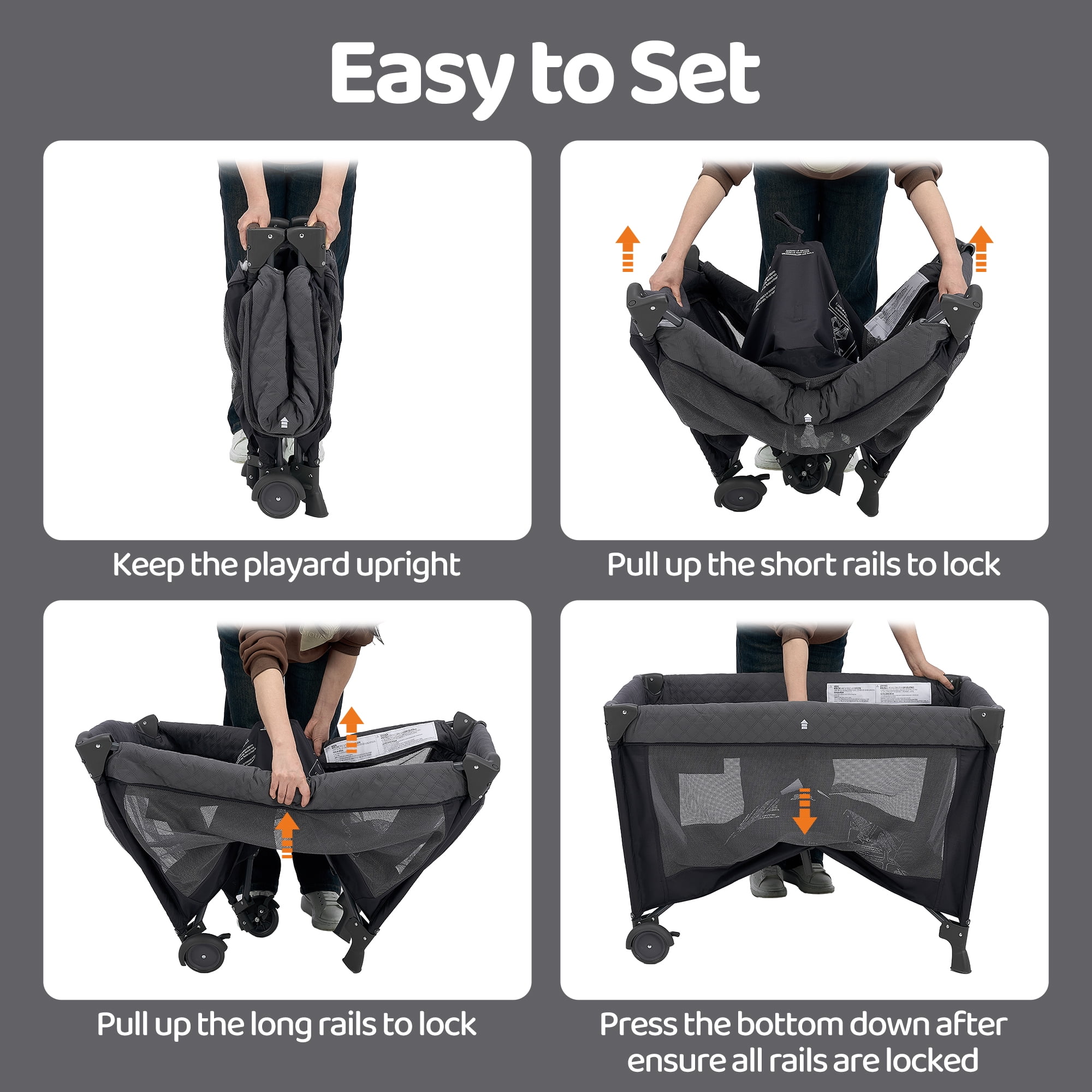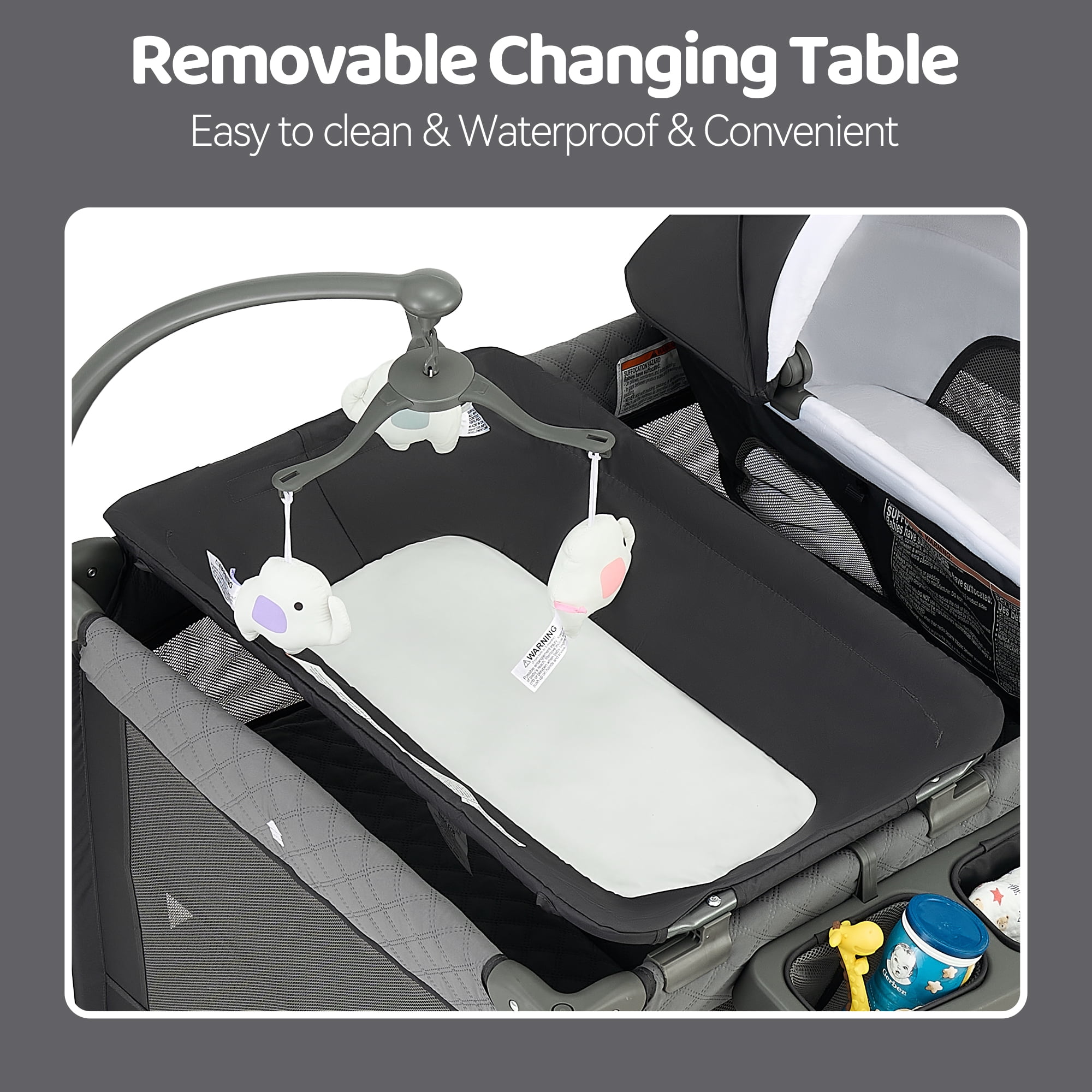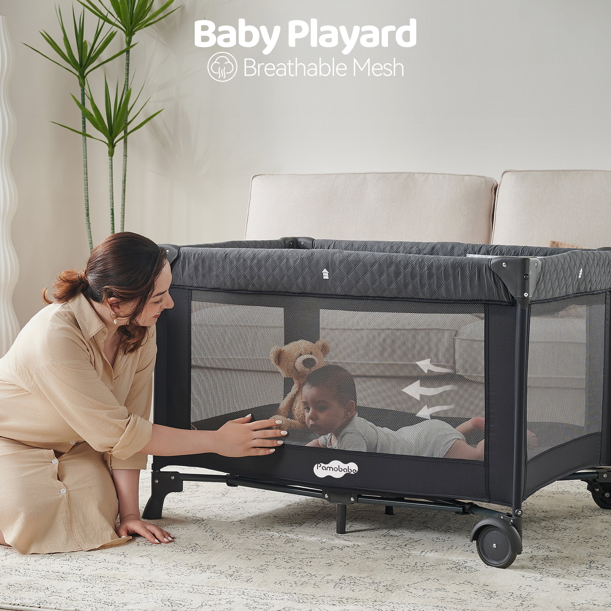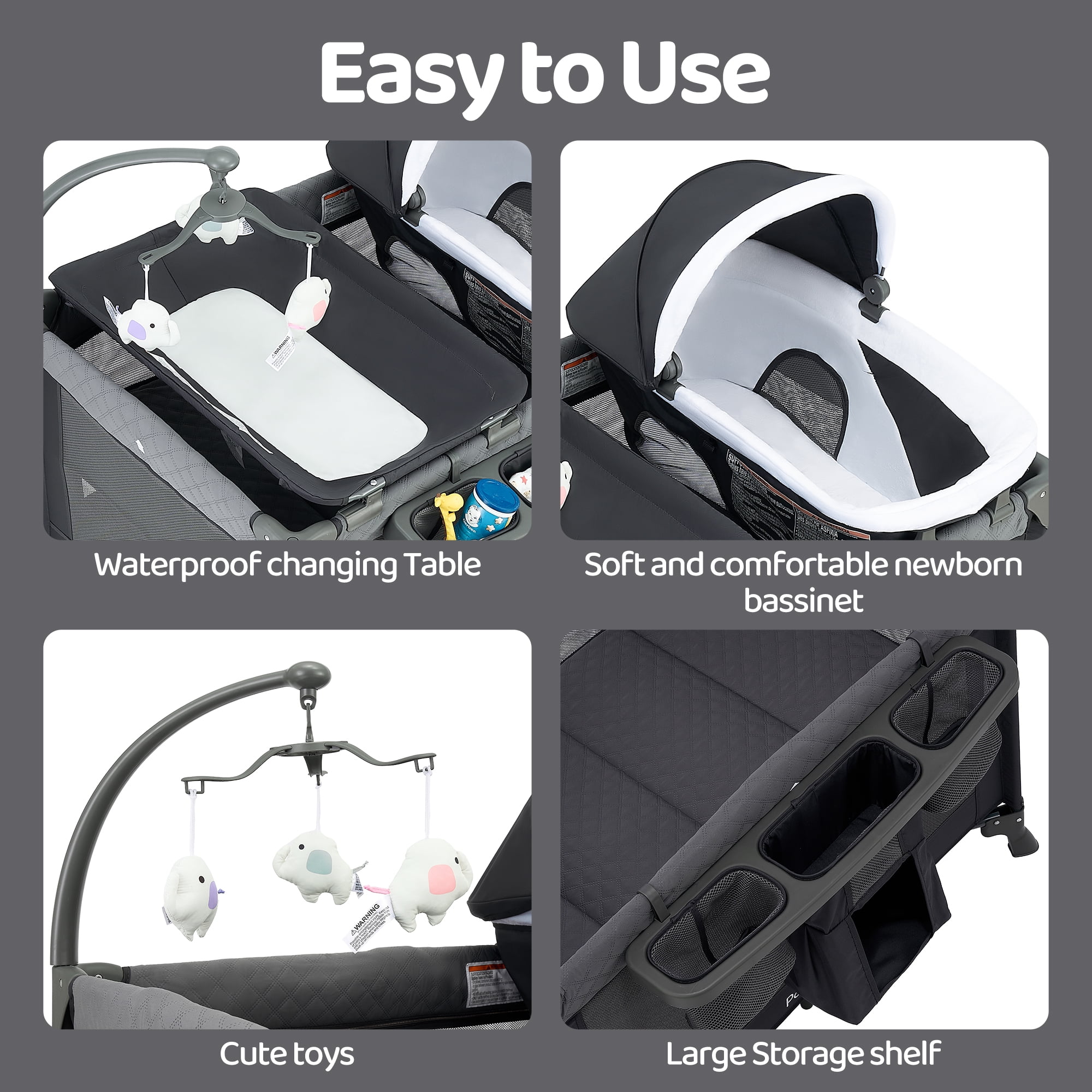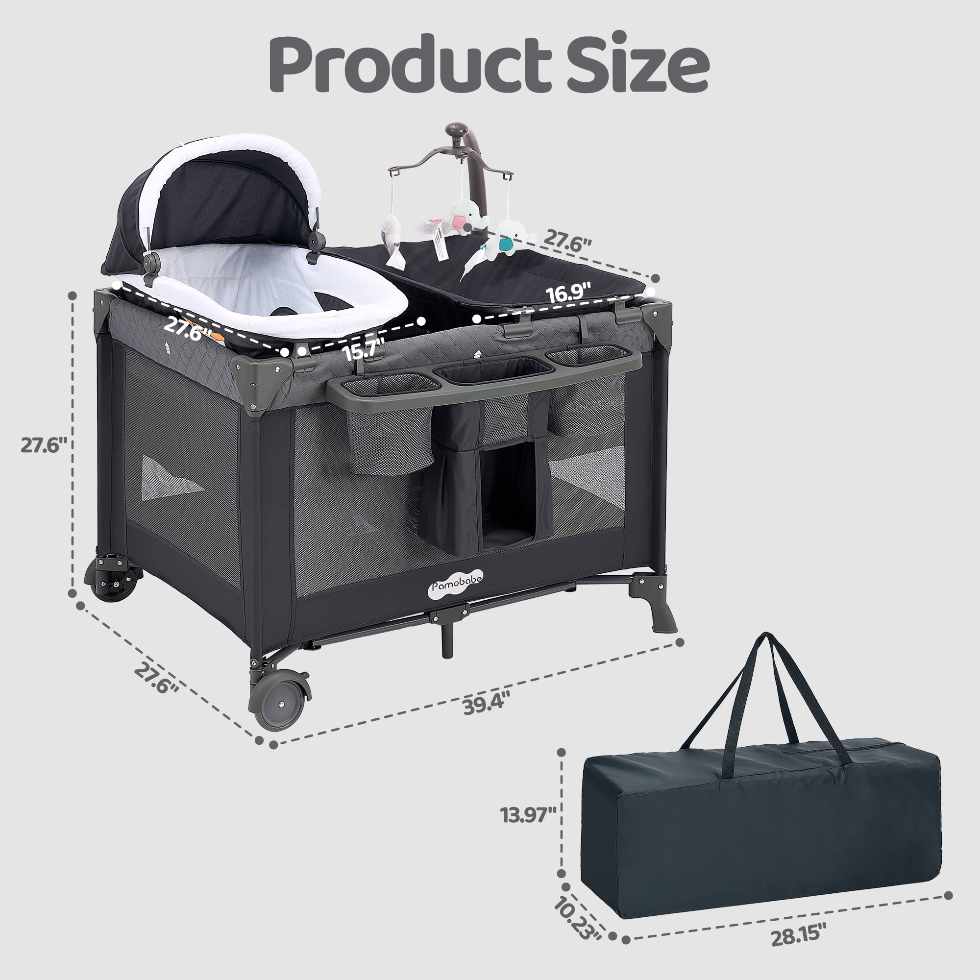 Pamo Babe 4-in-1 Baby Playard with Bassinet & Changing Table for Newborn,Grey