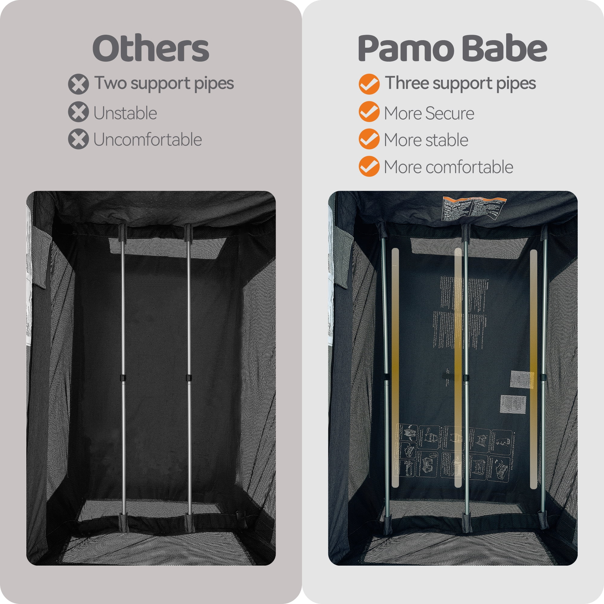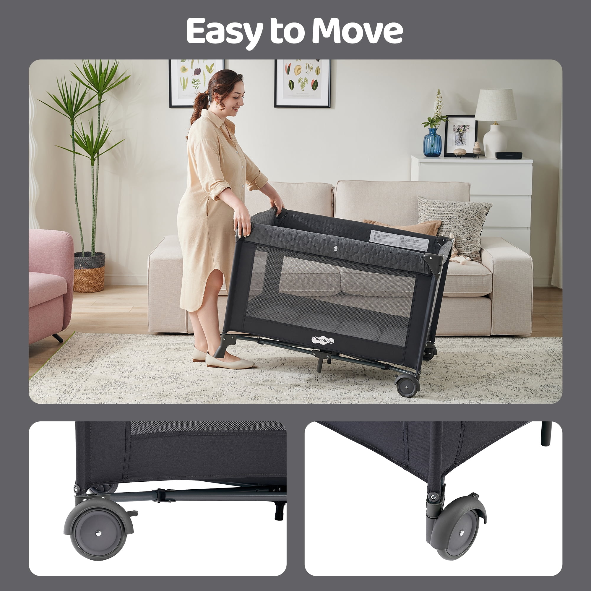 Pamo Babe Removable Full size Bassinet with a comfortable mattress delivers a soft touch for baby. The Bassinet is suitable for baby up to 20 pounds. Dimension of mattress is L 36″x W 24″ Easy and quick to assemble and fold without any other tools. Package dimension is L 27″x W 9″x H 9″ The breathable mesh fabric ensures visibility, healthy air flow and guarantees a peaceful slumber for your baby. 2 moving wheels with brakes provide smooth movement and safety. You can clean the baby playpen with a wet towel or wipes High quality metal pipe make the whole 4 Panels baby bed strong and durable, providing your baby with safe protection. The baby playpen is suitable for baby up to 33 pounds Weight/33 inch Height,Unisex.
