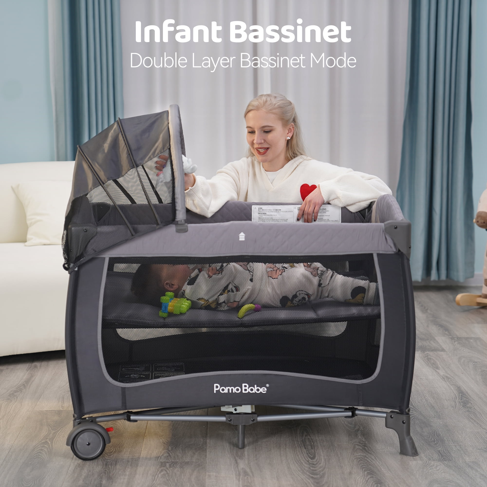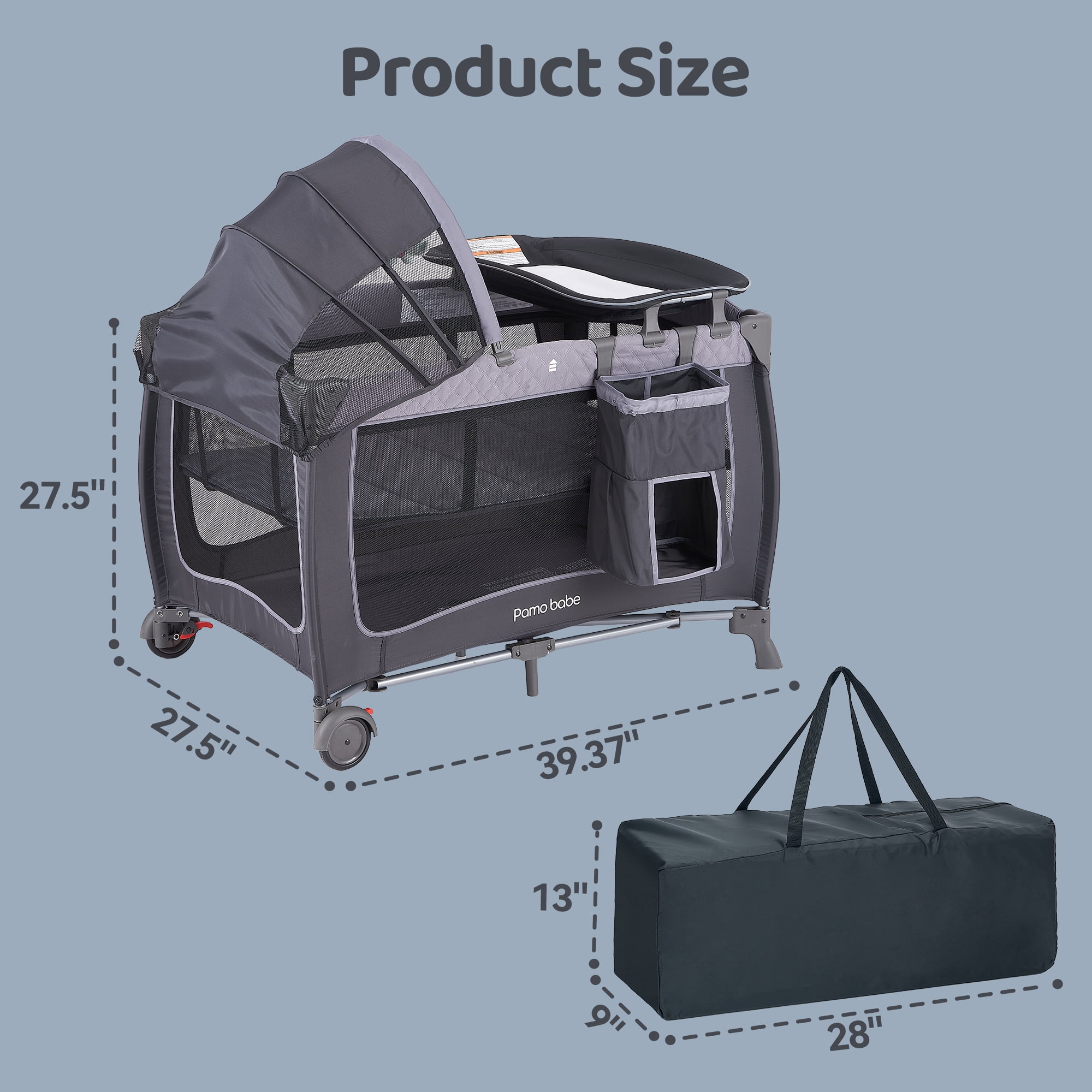 Pamo Babe Unisex Portable Baby Play Yard Include Wheels, Canopy, Changing Table for Newborn(Grey)