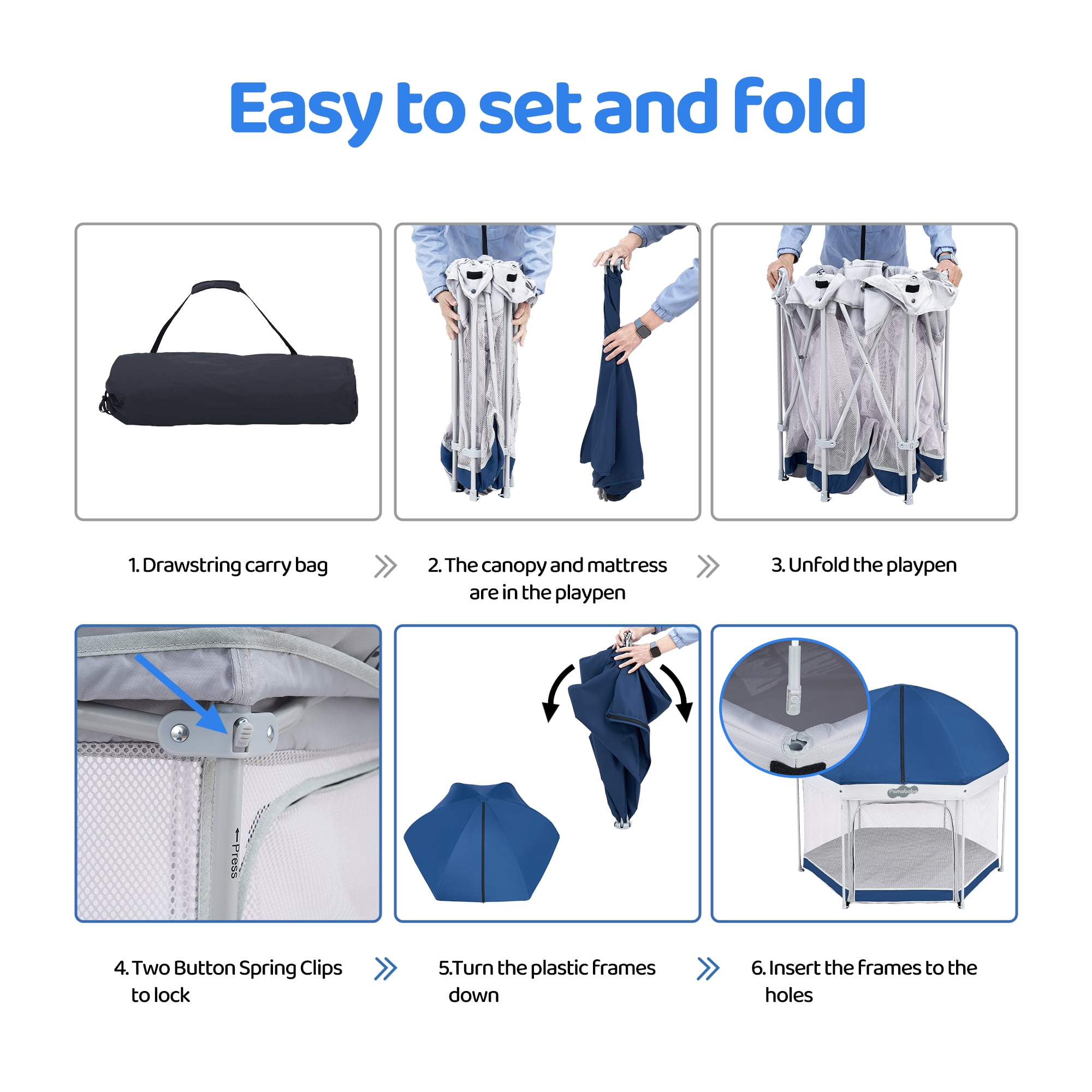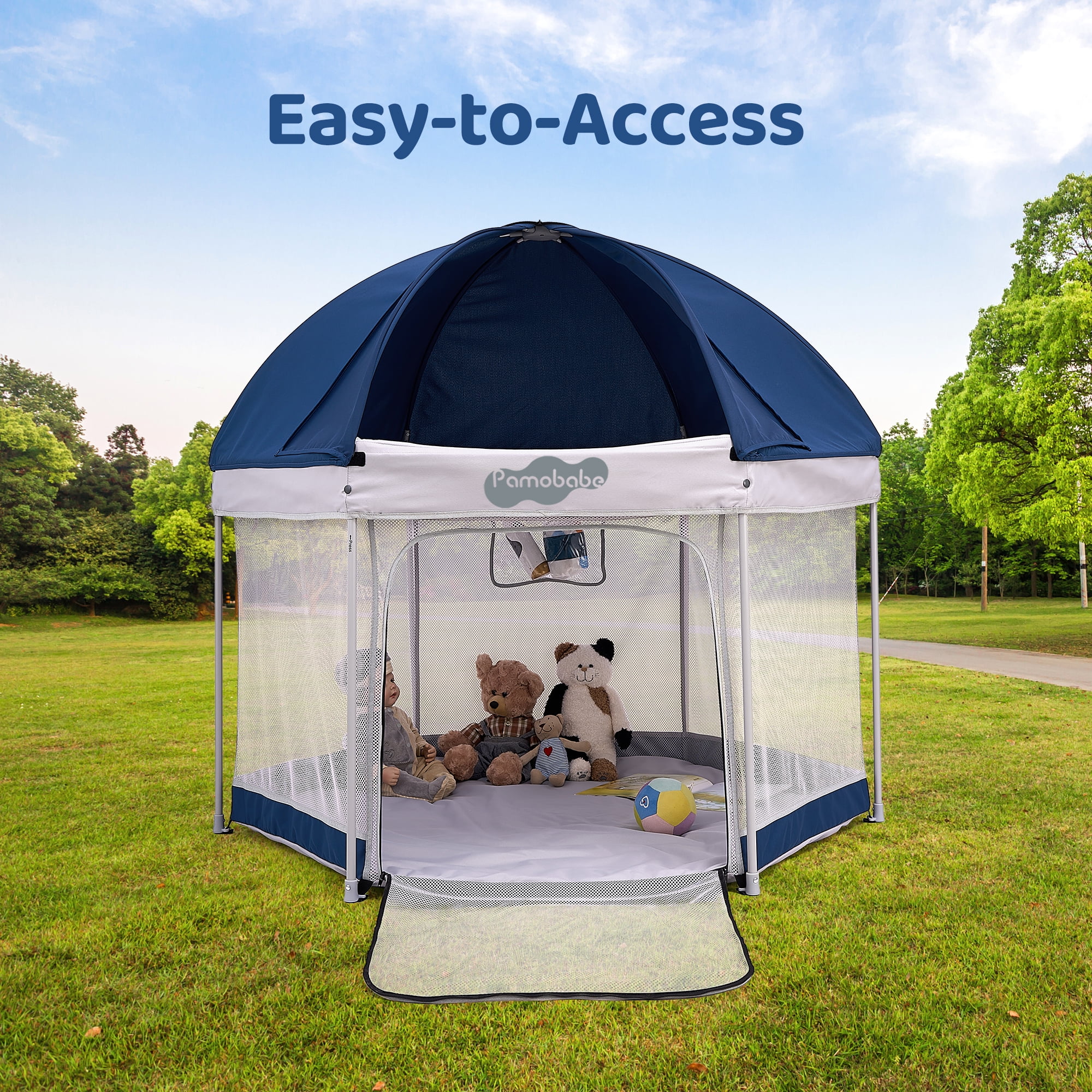 Pamo Babe Outdoor Baby Playpen, Portable, Lightweight, Toddler Playard With Canopy and Travel Bag – Blue