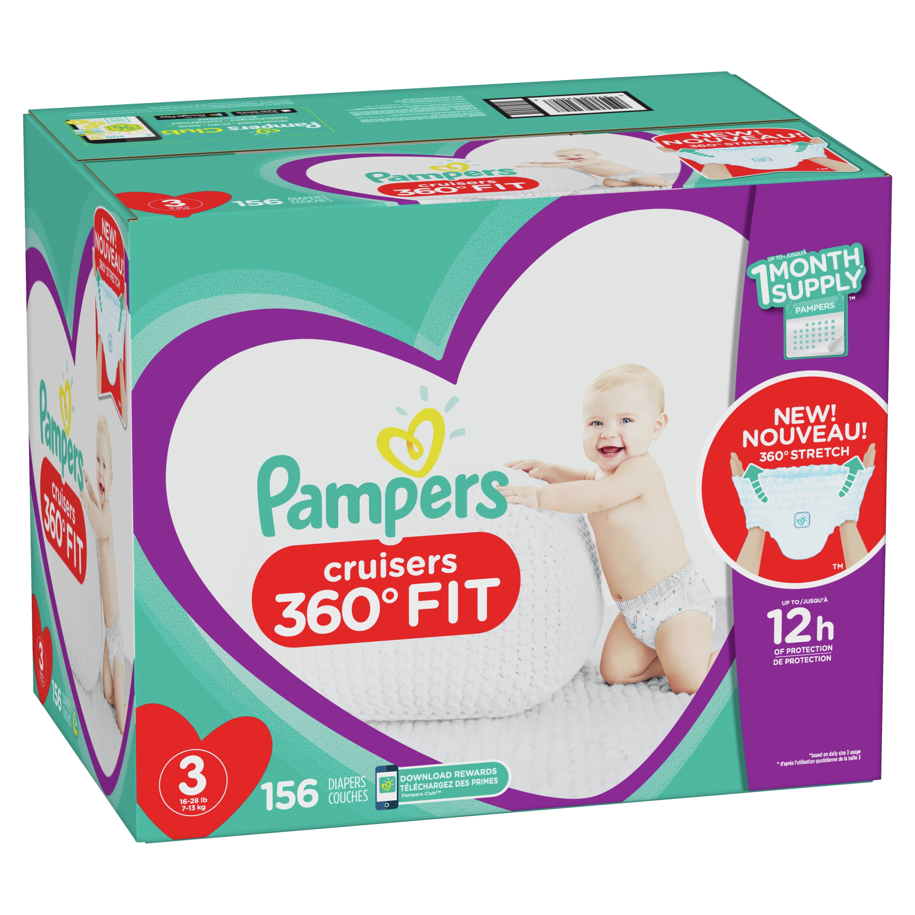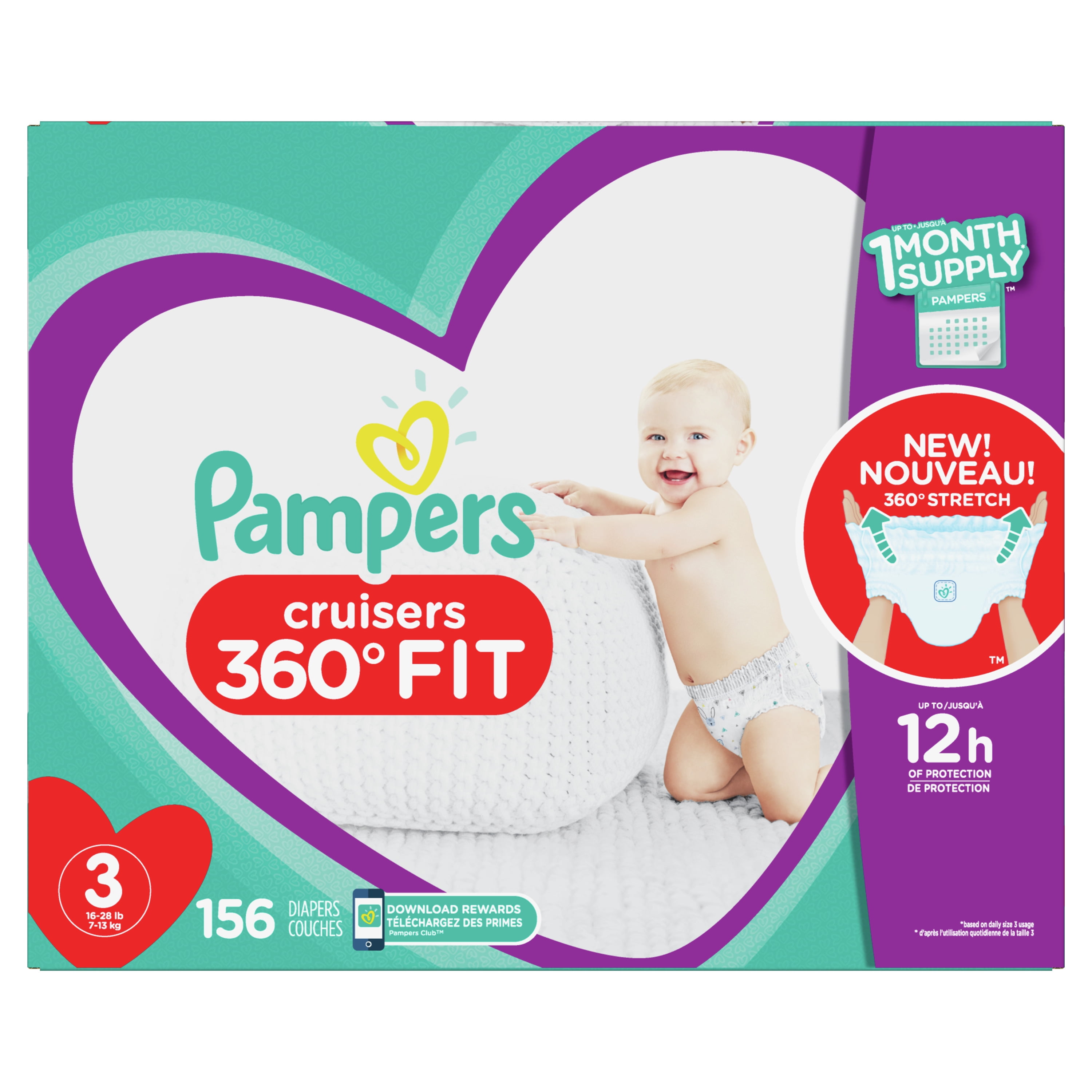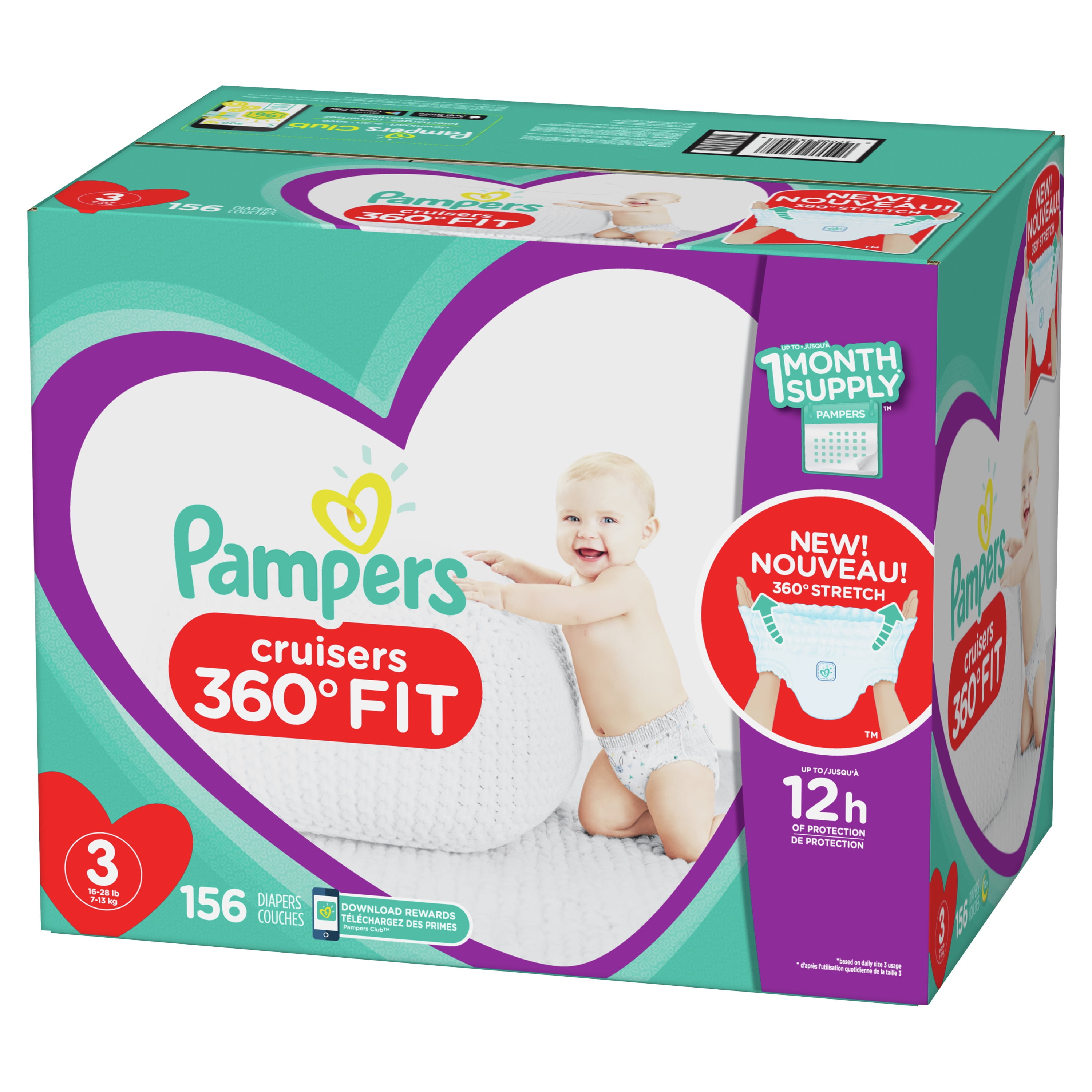 Pampers Cruisers 360 Fit Diapers, Active Comfort, Size 3, 156 Ct