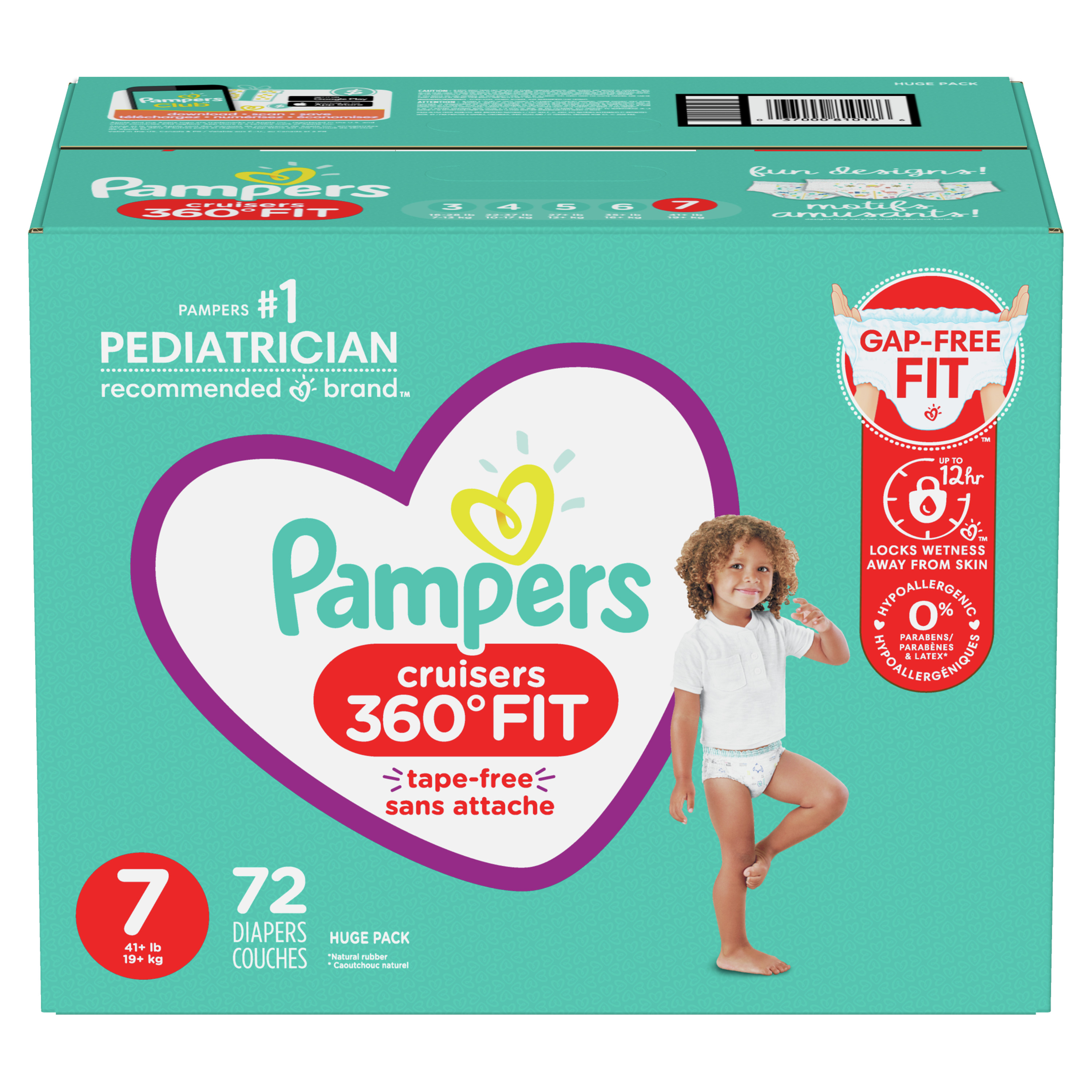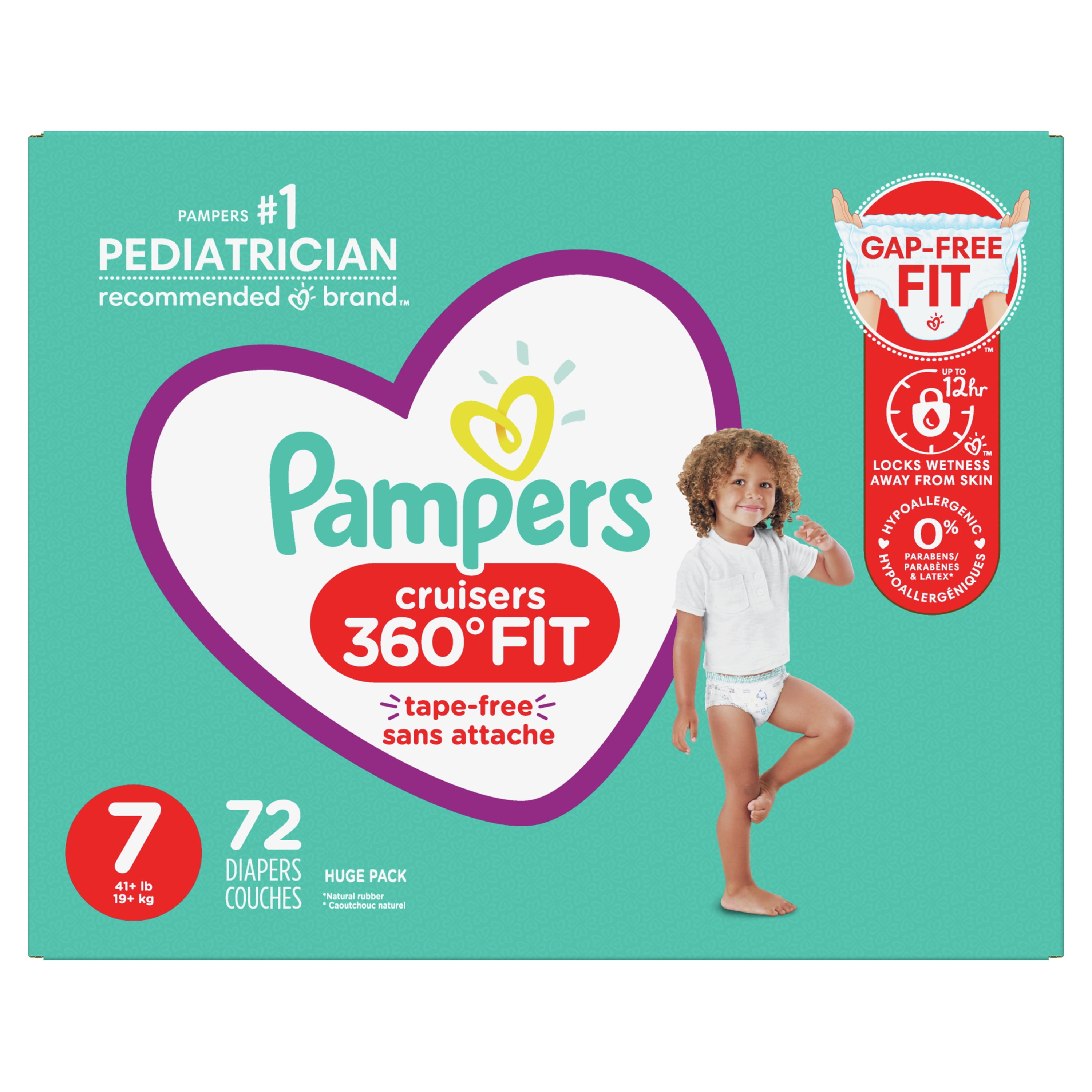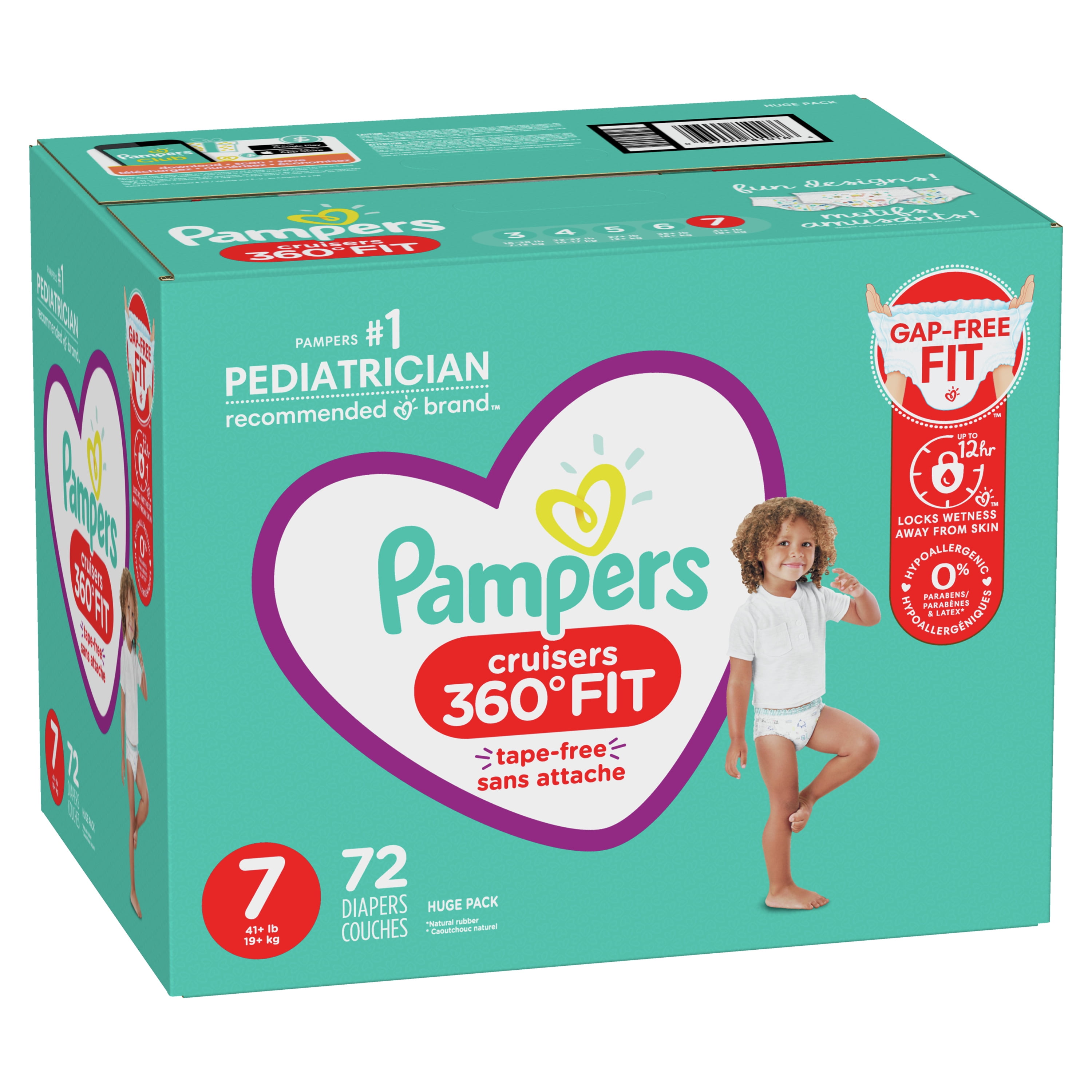 Pampers Cruisers 360 Fit Diapers, Active Comfort, Size 7, 72 Ct