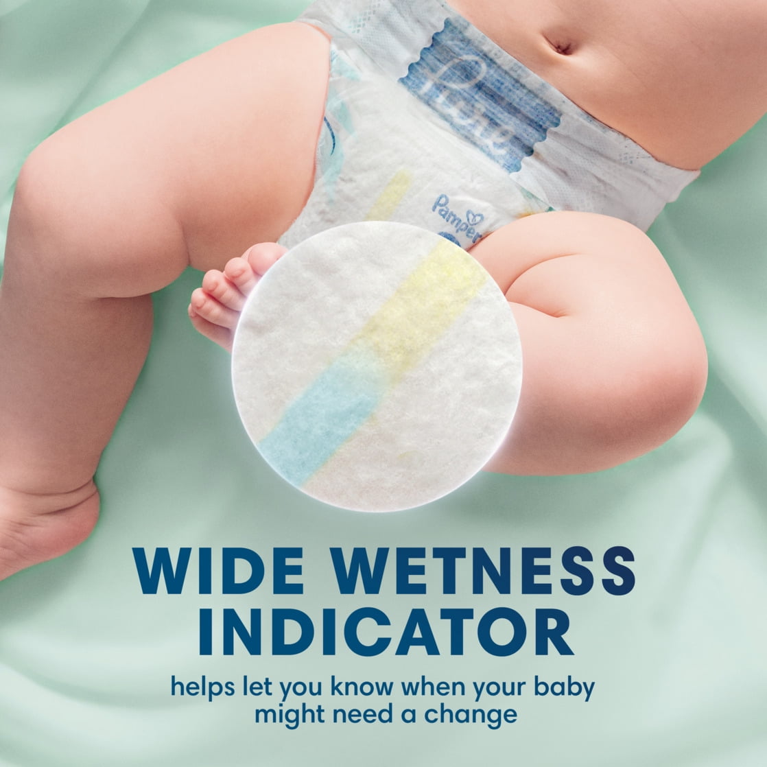 Pampers Pure Protection diapers are crafted with thoughtfully chosen materials for dry and healthy skin Absorbent plant-based liner. Plant-based and polypropylene fiber, enriched with shea butter to help protect skin Hypoallergenic and free of elemental chlorine, fragrance, parabens, and latex* (*Natural rubber) Locks away wetness from skin up to 12 hours Designer prints that make Pampers Pure the complete package of style and protection Made with premium cotton for a soft outercover and breathability Pampers reassuring Wetness Indicator lets you know when your baby might need a change Packaging and products may vary