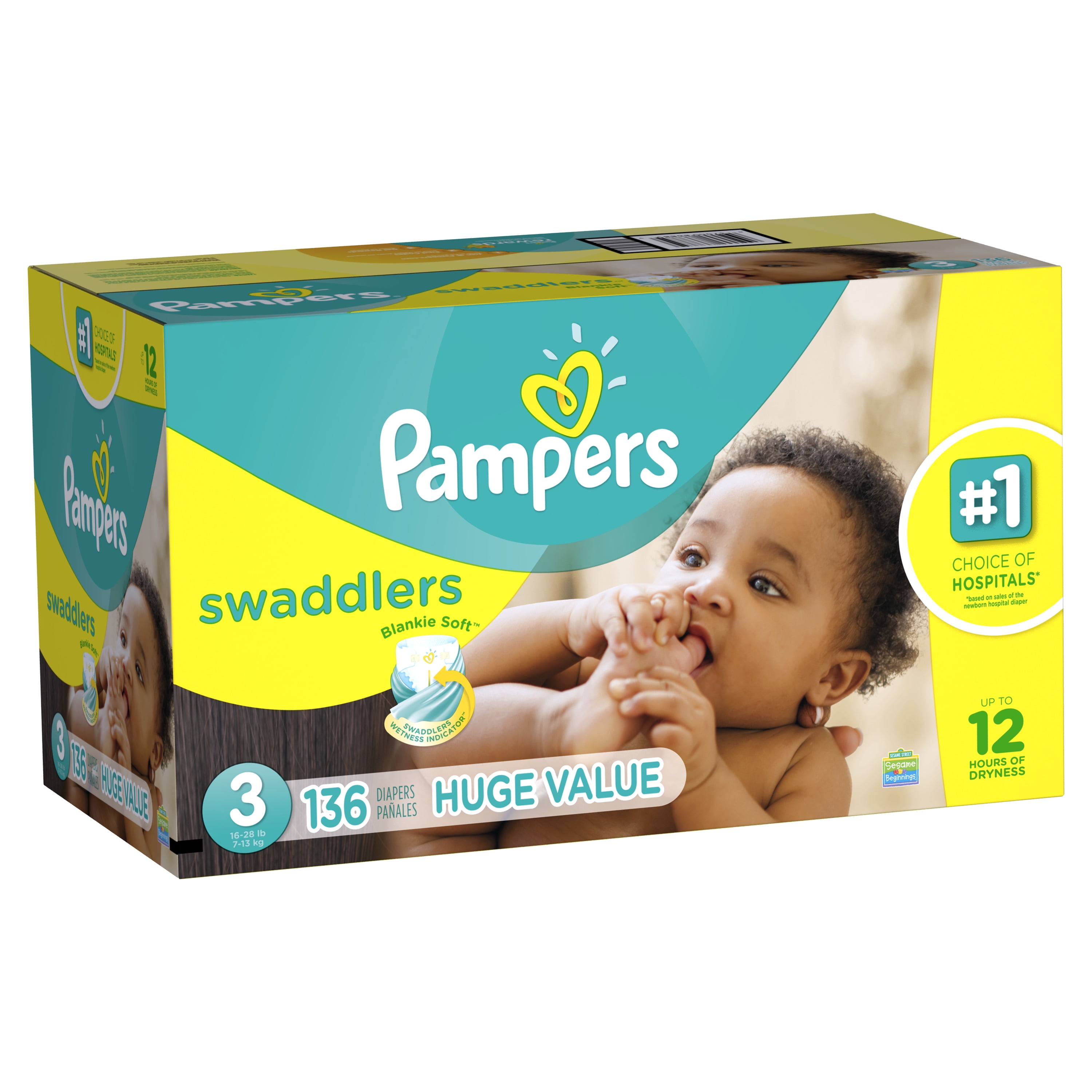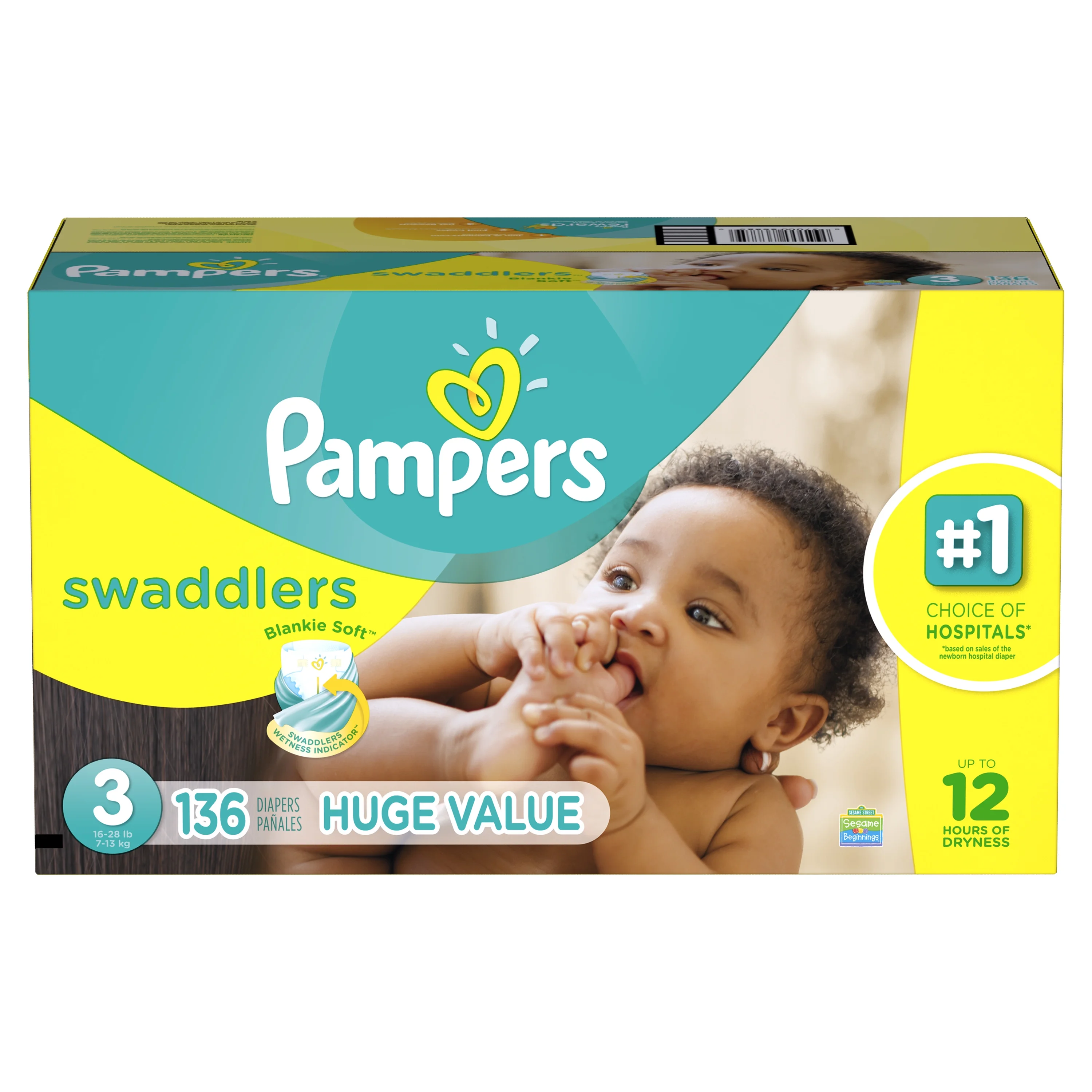 Swaddlers Size 3 136-Count: Pampers’ most trusted comfort and protection Pampers Blankie Soft diapers are the #1 Choice of US Hospitals (based on sales of the newborn hospital diaper) Wetness indicator tells you when your baby might need a change Swaddlers Size 3 136-Count’s unique Absorb Away Liner pulls wetness and mess away from your baby’s skin Extra Absorb Channels to help distribute wetness evenly for up to 12 hours of protection Infant product has soft, stretchy sides to flex with your baby’s every move Great protection for a great value Gentle and hypoallergenic Provide the best care for your baby’s skin Come in a pack of 136
