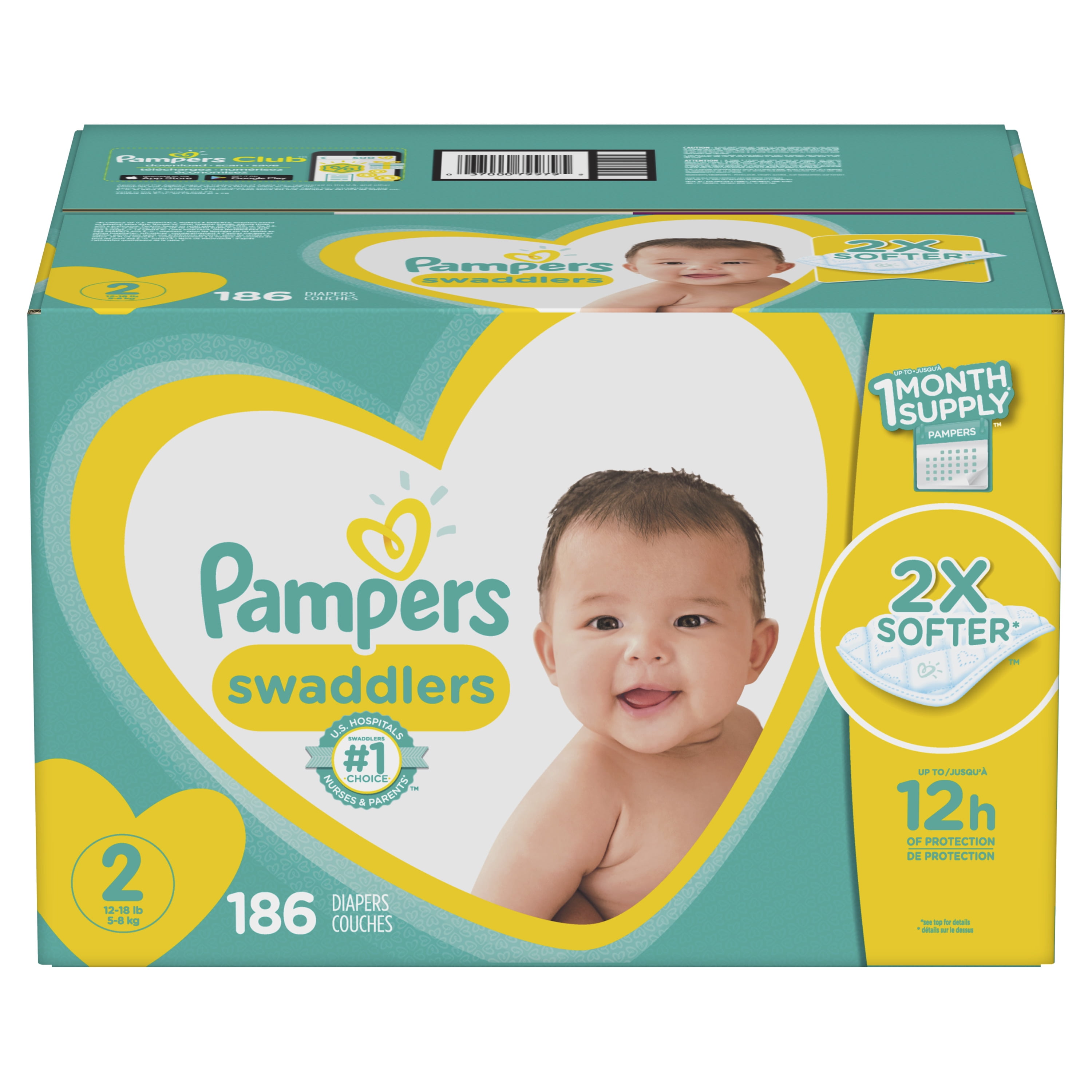 Pampers Swaddlers Diapers, Soft and Absorbent, Size 2, 186 Ct