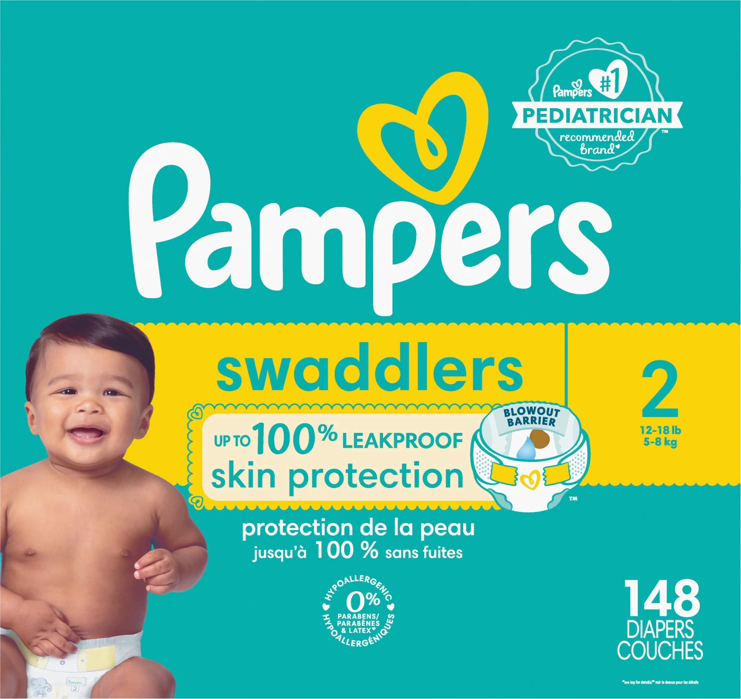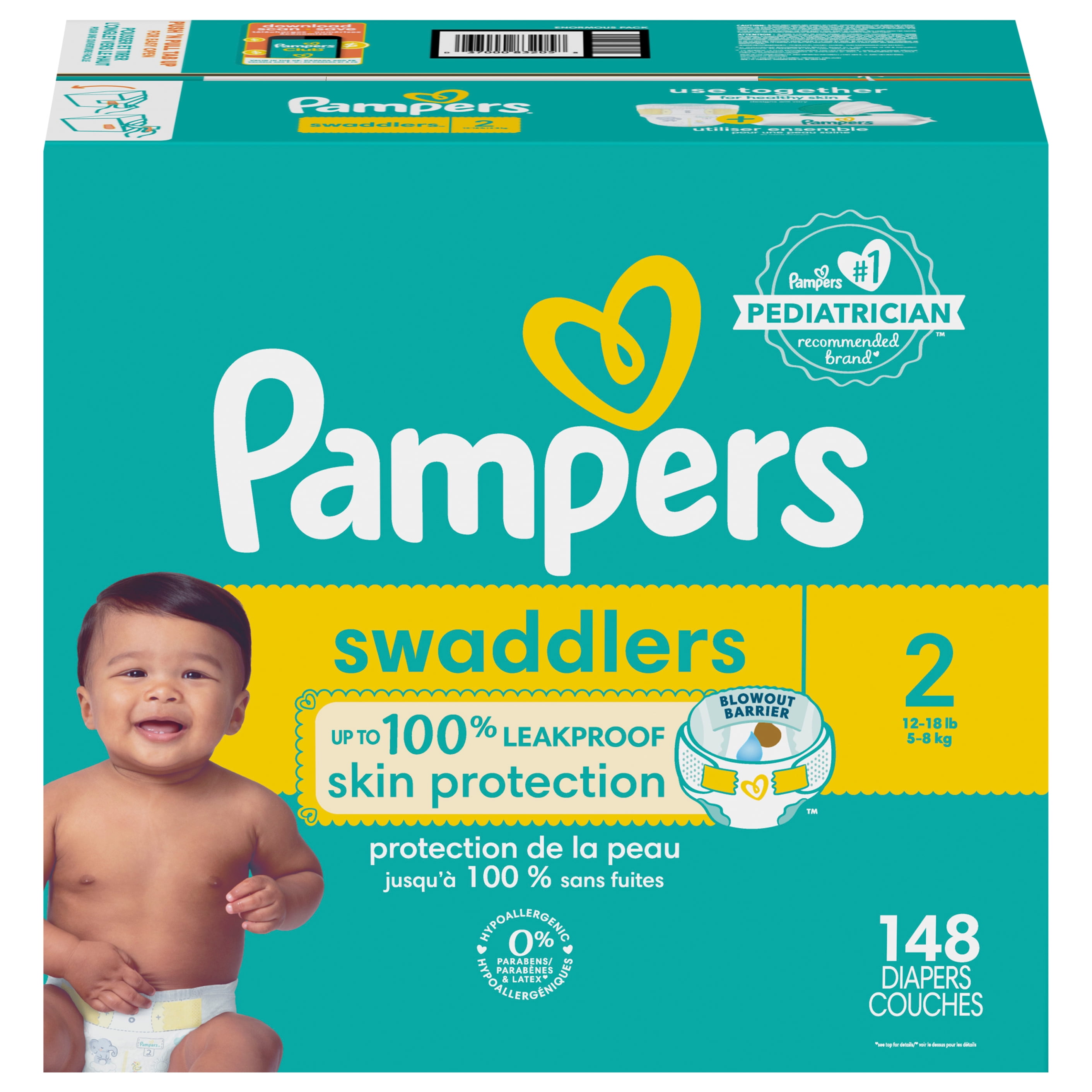 Pampers Swaddlers Wetness Indicator Hypoallergenic Soft Latex and Paraben Free Soft Diapers – Size 2, 148 Count