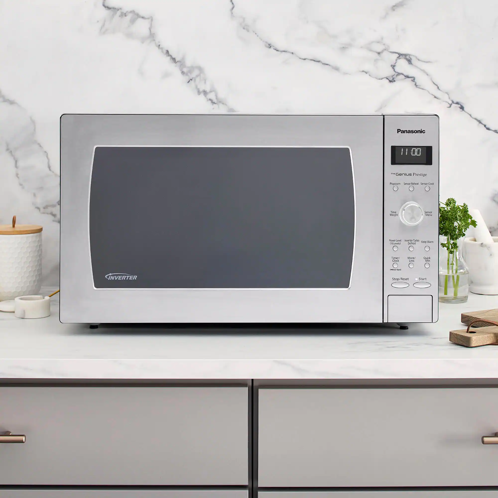 Panasonic NN-SD987SATH Full-Size Microwave: Cook in style with this sleek microwave. Small or large meals cook quicker and more efficiently with Inverter technology. The high-power settings preserve the nutritional value of your food; it also reduces cold spots and unappetizing textures.