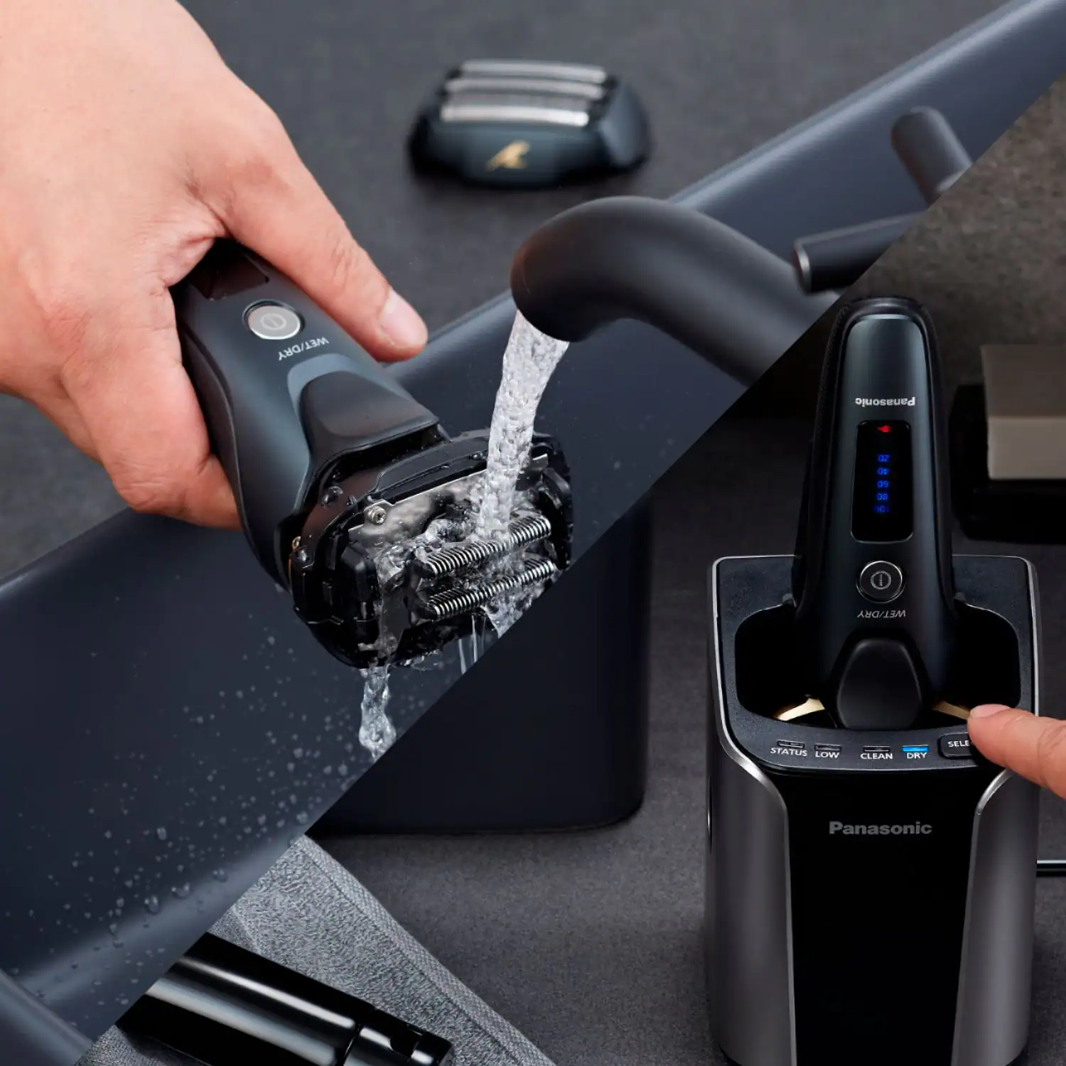 Maintain facial hair effectively with this cordless Panasonic ARC5 ELITE five-blade wet or dry electric shaver. The ultrafast motor delivers up to 70,000 cross-cuts per minute for quick shaving, while the flexible shaving head pivots in 16 different directions for a smooth shave. This Panasonic ARC5 ELITE five-blade wet or dry electric shaver has a waterproof design for durability, and the ergonomic handle adds comfort for seamless operation.