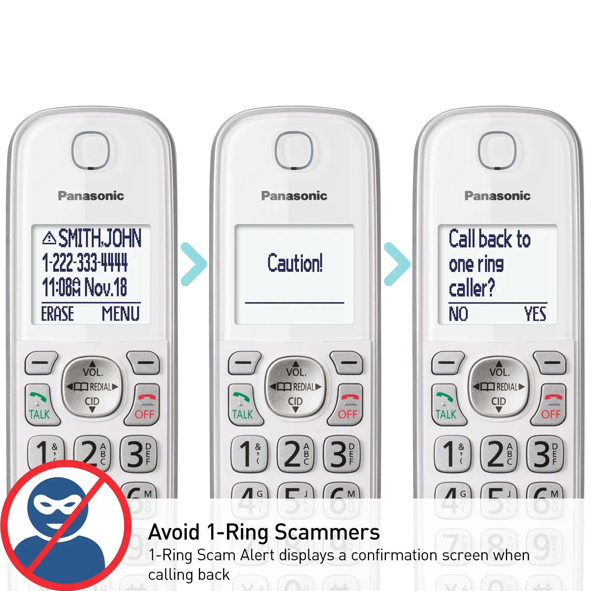 Automated Call Block blocks robocalls before the phone rings; Telemarketing Call Block lets you to block announced callers; block an additional 1,000 numbers with the 1-touch Call Block Button on handset units; One-Ring Scam Alert helps protect you from one-ring scammers.