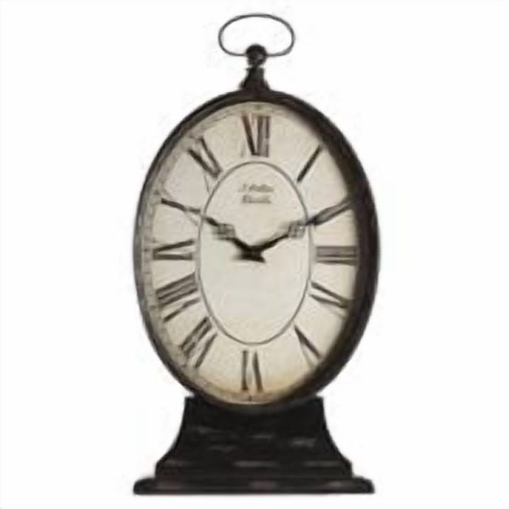 The Paris table clock is a signature Paris Table Clock. The design of this unique piece makes it a statement piece for many years to come. The distressed black iron finish on the clock with antique clock face featuring roman numerals is a classic high quality table clock.