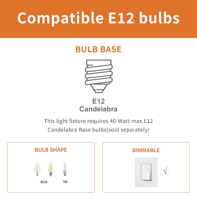 - Light Bulb Base Type: Candelabra base (E-12)