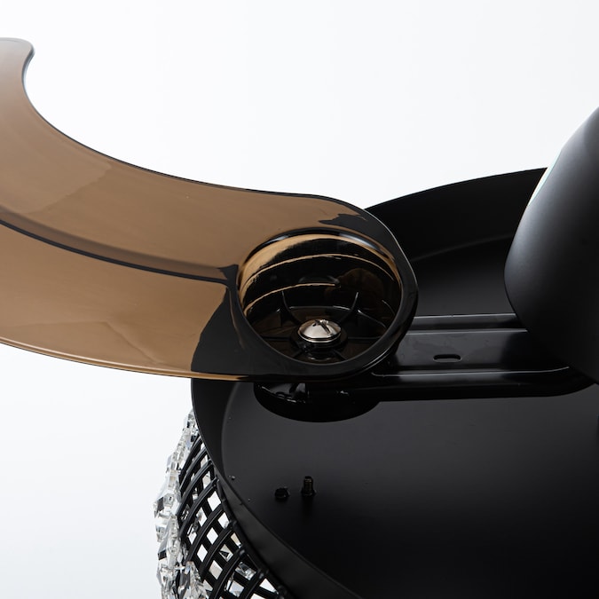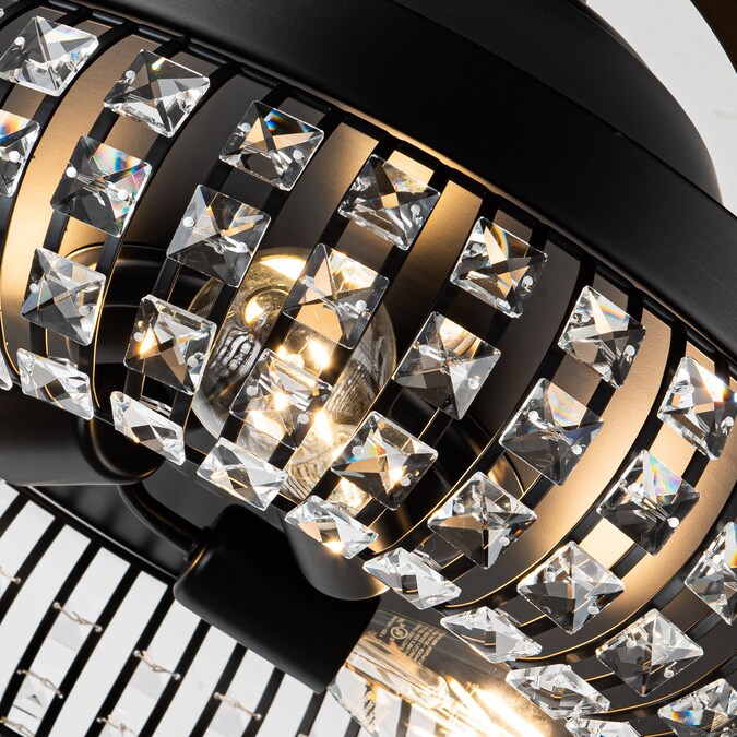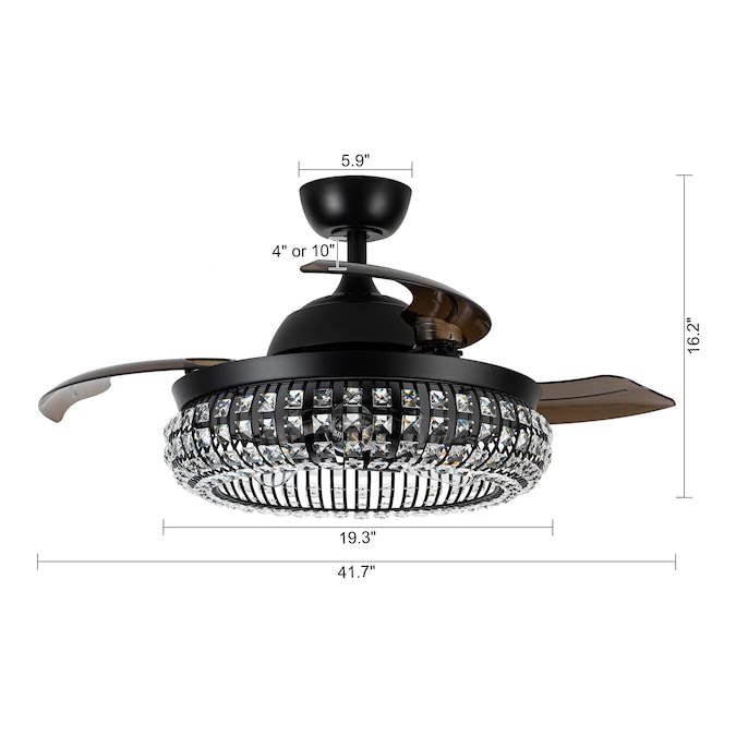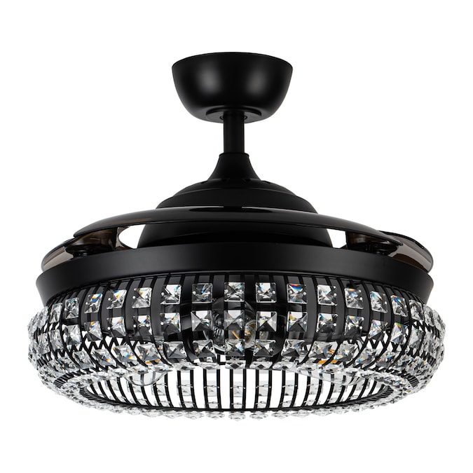 This 42-in bladeless ceiling fan is a combination of a modern crystal chandelier light and a retractable ceiling fan. 3 retractable acrylic blades, when turning on the chandelier ceiling fan, it will stretch out and when turning off the fan, the foldable blades will retract automatically. This modern ceiling featured matte black finish with shimmering geometric crystal surrounded, three vintage Edison-style energy-efficient LED bulbs (not included).The included remote control makes it easy to change the fan’s three speeds.