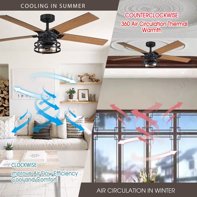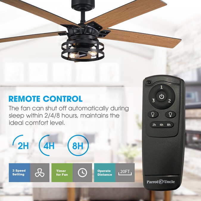 Upgrade your home with this Parrot Uncle black industrial ceiling fan. This 52-in matte black modern ceiling fan with five blades in black and cherry is the perfect addition for any space. The quiet performance ensures a restful space elevated by energy conservation and ease of use. Including remote control easily control the 3-speed settings, light output