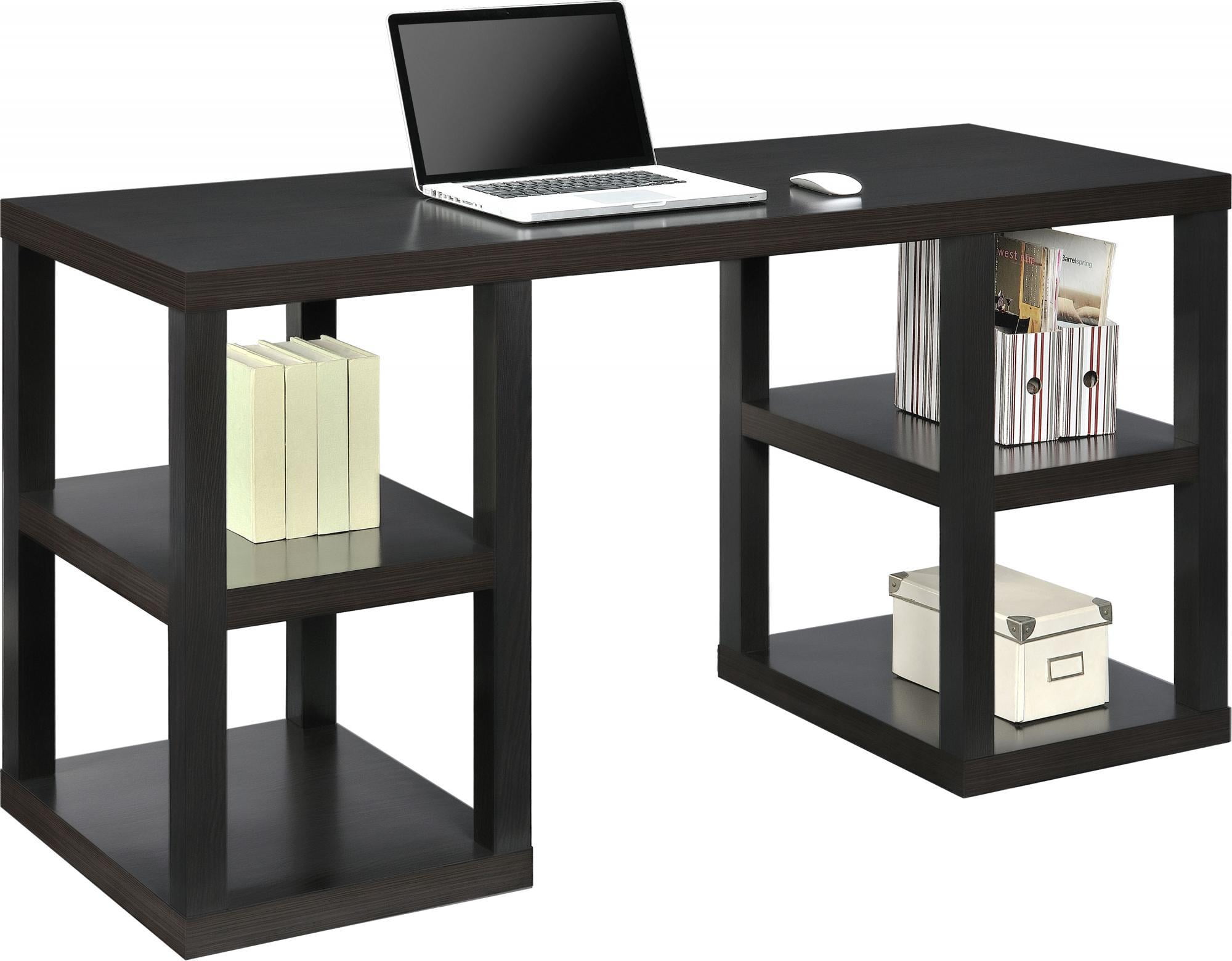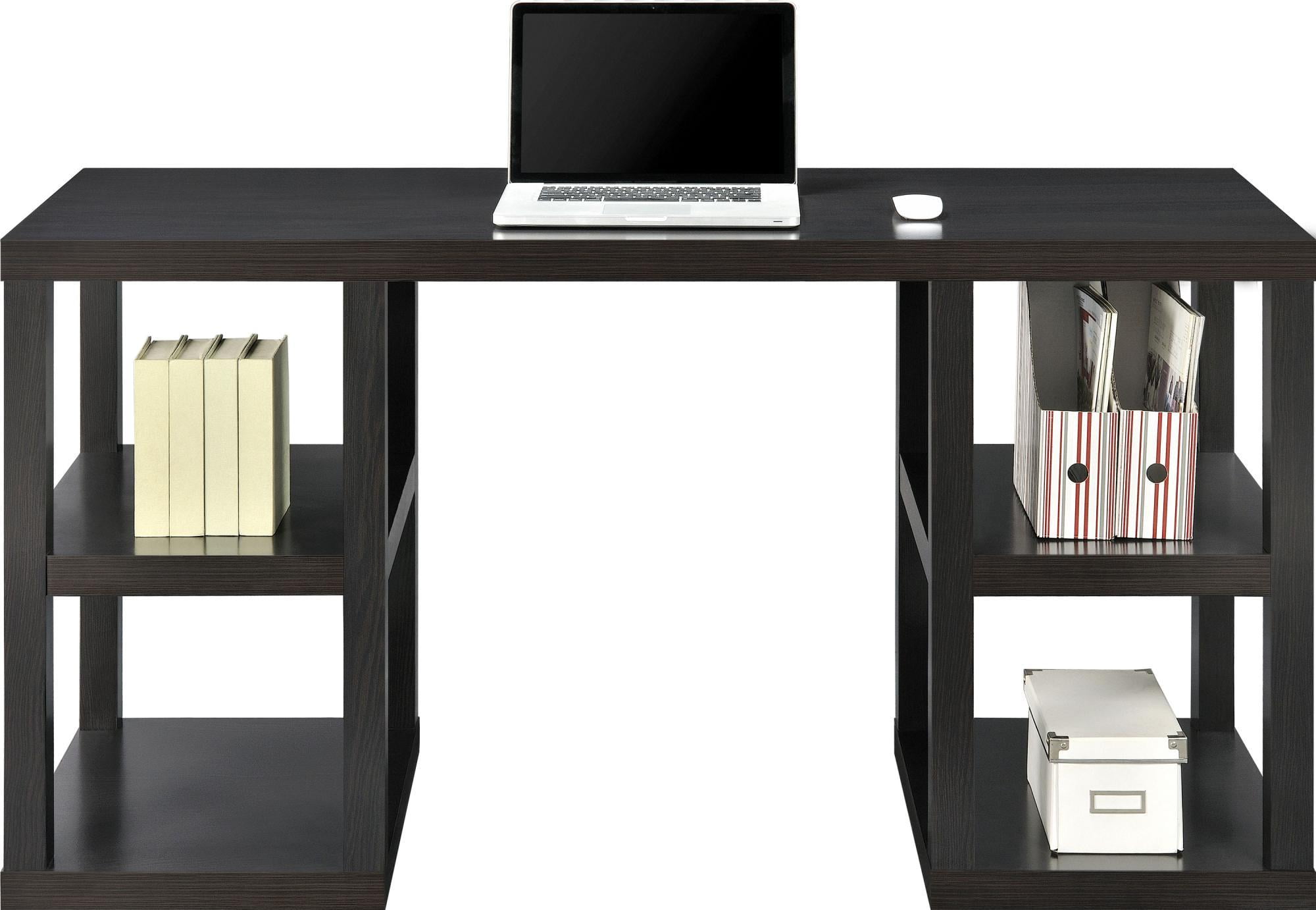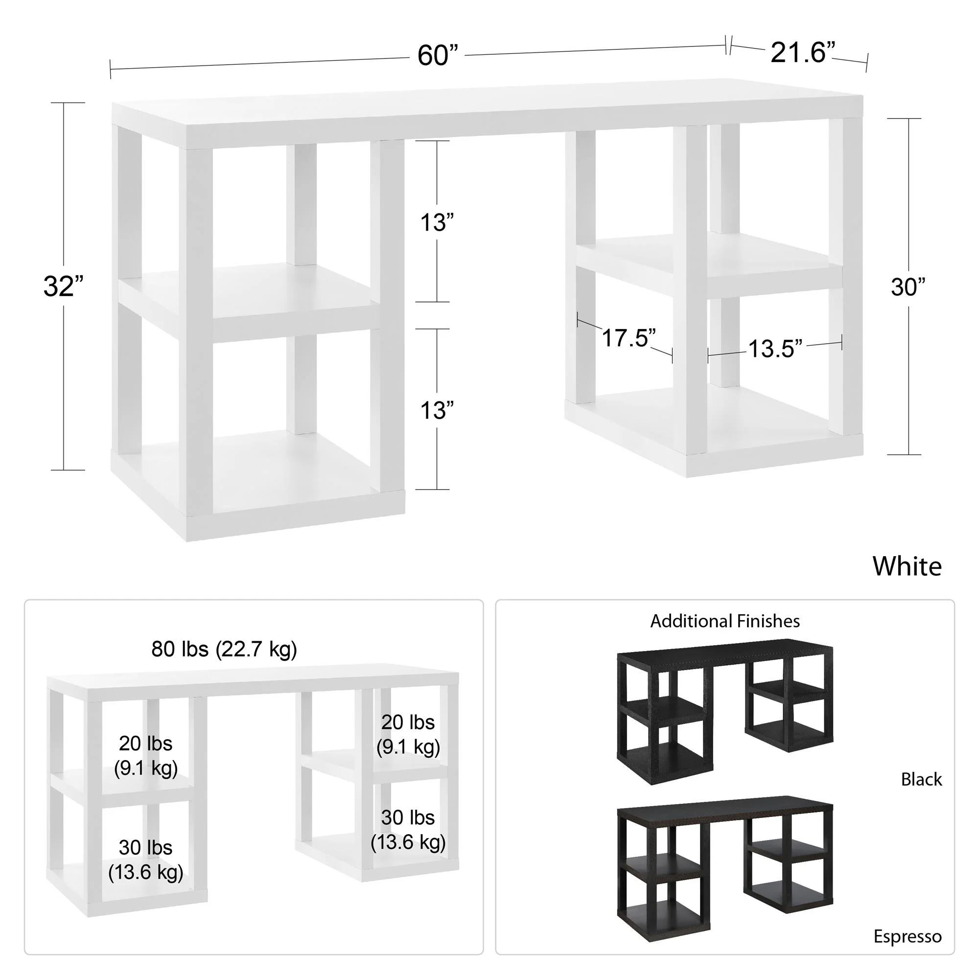 Get all the storage you need to work or learn from home with the Ameriwood Home Parsons Double Pedestal Computer Desk Made of laminated hollow core, the crisp white finish will fit perfectly with any style and decor for an affordable price The desktop can accommodate your laptop and monitors The 4 open shelves will keep offices supplies organized