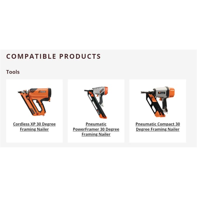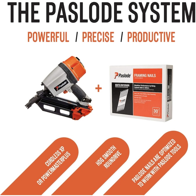 For ultimate tool performance, use only genuine Paslode® 30º framing nails. Strips won’t break, even in rainy weather. Paper tape collation means no flying debris. Paslode’s Hot Dipped Galvanized Plus nails offer premium corrosion in all pressure treated lumber such as ACQ and MCQ.