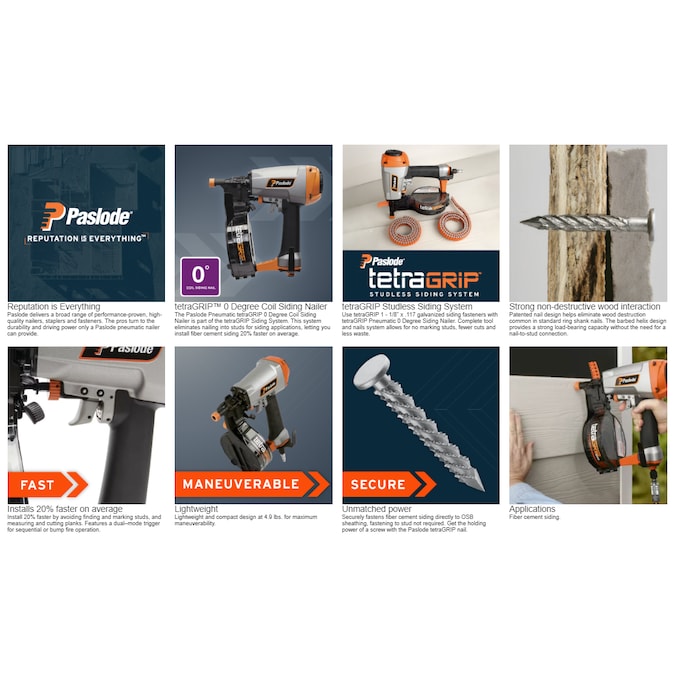 - Use only with Paslode tetraGRIP studless siding fastener