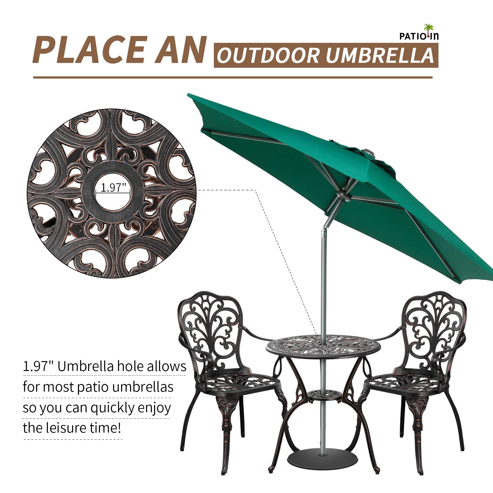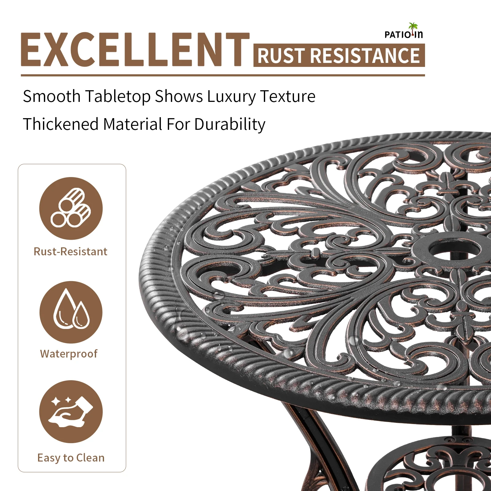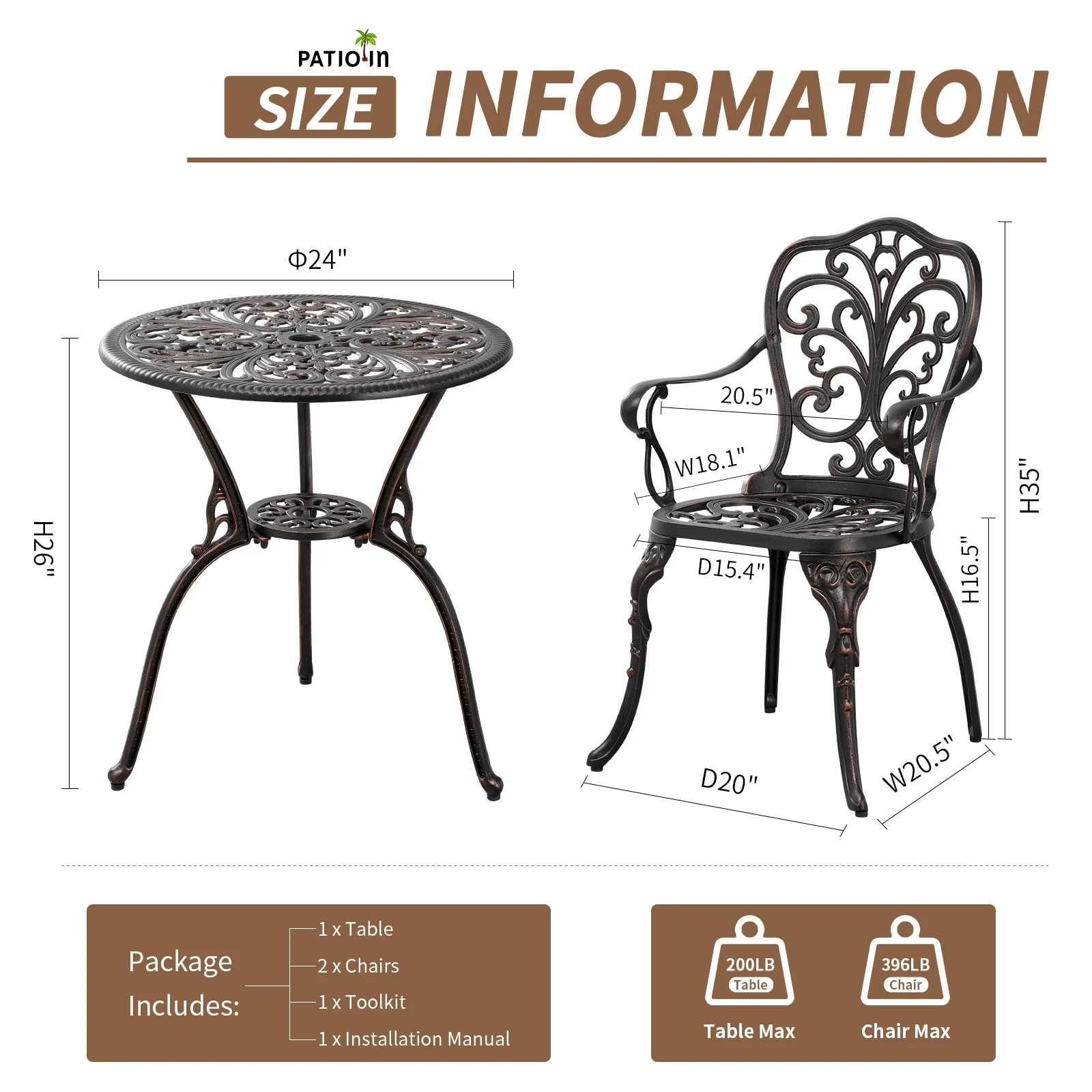 PATIO-IN Outdoor Bistro Set 3 Piece Cast Aluminum Patio Bistro Sets Outdoor Patio Furniture Set for Garden,Bronze