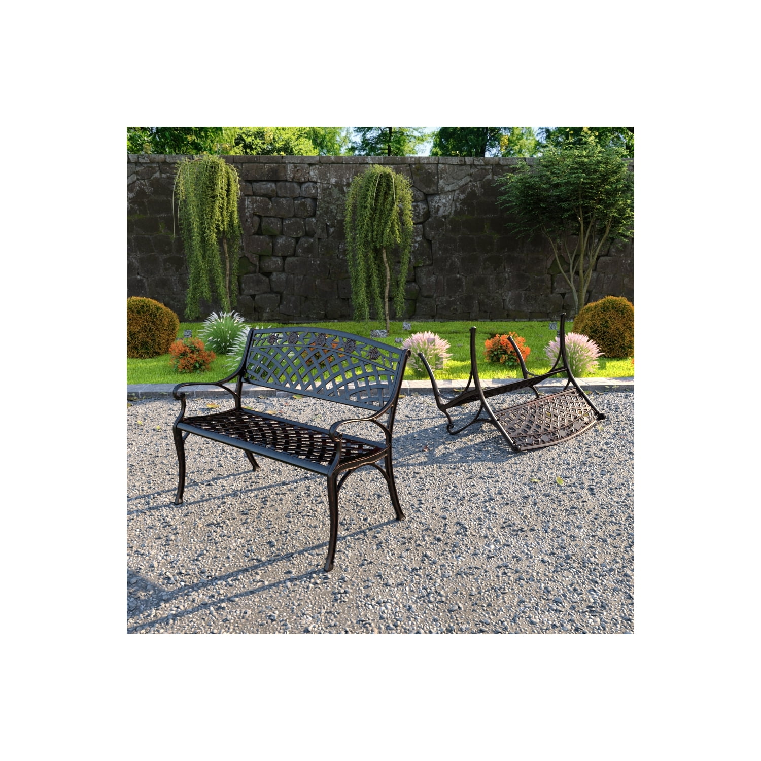 Cast aluminum construction Beautiful antique bronze finish Zero maintenance Easy assembly Lightweight for easy arrangement Color and texture may vary