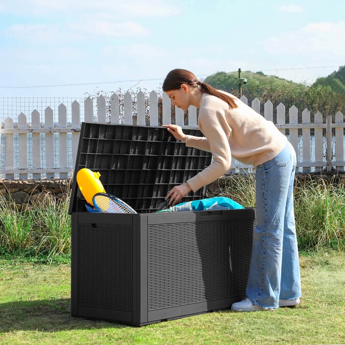 The Patiowell 100 Gallon Deck Box can help you regulate outdoor items that are a little out of hand. The enormous storage space of this enormous deck storage box makes it ideal for everything from pool equipment to patio furniture. Additionally, you won’t ever have to worry about leaving things outside in the deck box. The box is sturdy and long-lasting, and there is space for a lock for added security. As a result, it will keep the weather out and save your belongings. The Patiowell Deck Box is similarly simple to put together and has a warranty. Grab a Patiowell Deck Box today to get the finest of the best in deck boxes.