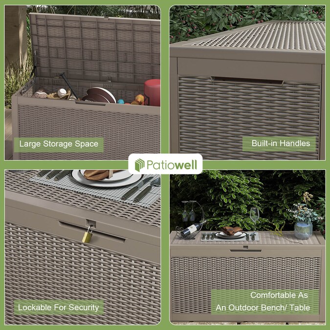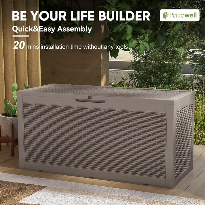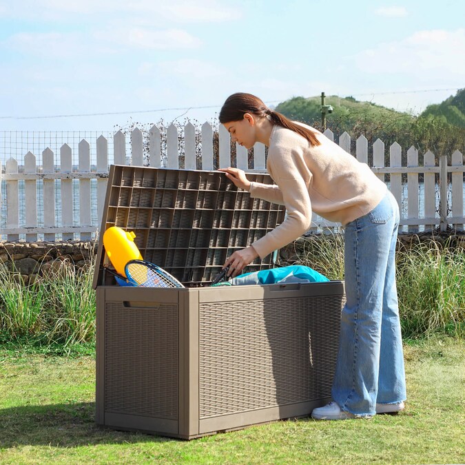 The Patiowell 100 Gallon Deck Box can help you regulate outdoor items that are a little out of hand. The enormous storage space of this enormous deck storage box makes it ideal for everything from pool equipment to patio furniture. Additionally, you won’t ever have to worry about leaving things outside in the deck box. The box is sturdy and long-lasting, and there is space for a lock for added security. As a result, it will keep the weather out and save your belongings. The Patiowell Deck Box is similarly simple to put together and has a warranty. Grab a Patiowell Deck Box today to get the finest of the best in deck boxes.
