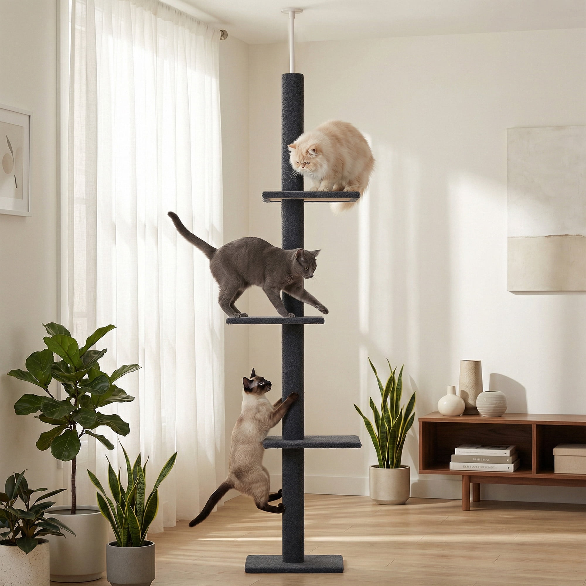 PAWZ Road 90-107″ Floor to Ceiling Cat Tree Tower 4 Tier Tall Cat Climbing Posts Adjustable, Gray