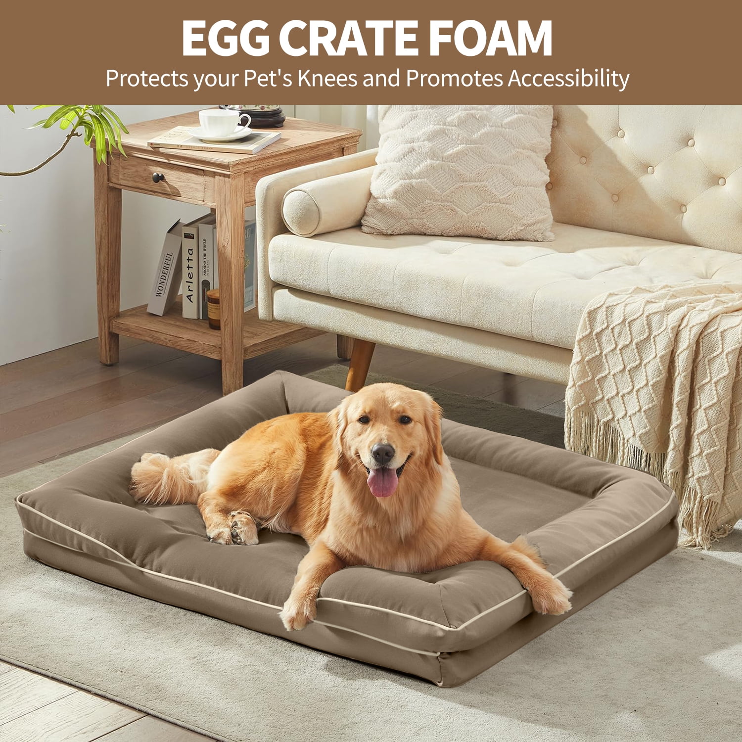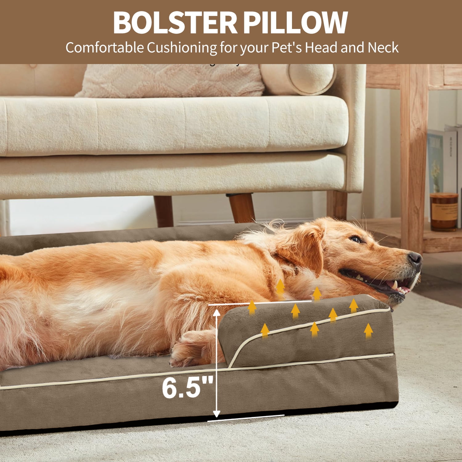 PayUSD Orthopedic Dog Bed for Extra Large Dogs Waterproof Memory Foam Dog Sofa Beds with Sides Non-Slip Bottom and Egg-Crate Foam Dog Bed with Removable Washable Cover,Brown (44″ L x 32″ W x 6.5″ Th)