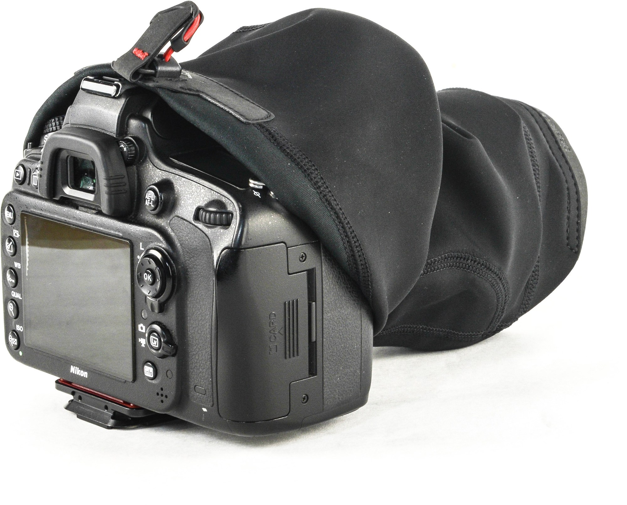 - Completely cinches closed for secure camera stowage; packs down small into its built-in storage pocket
