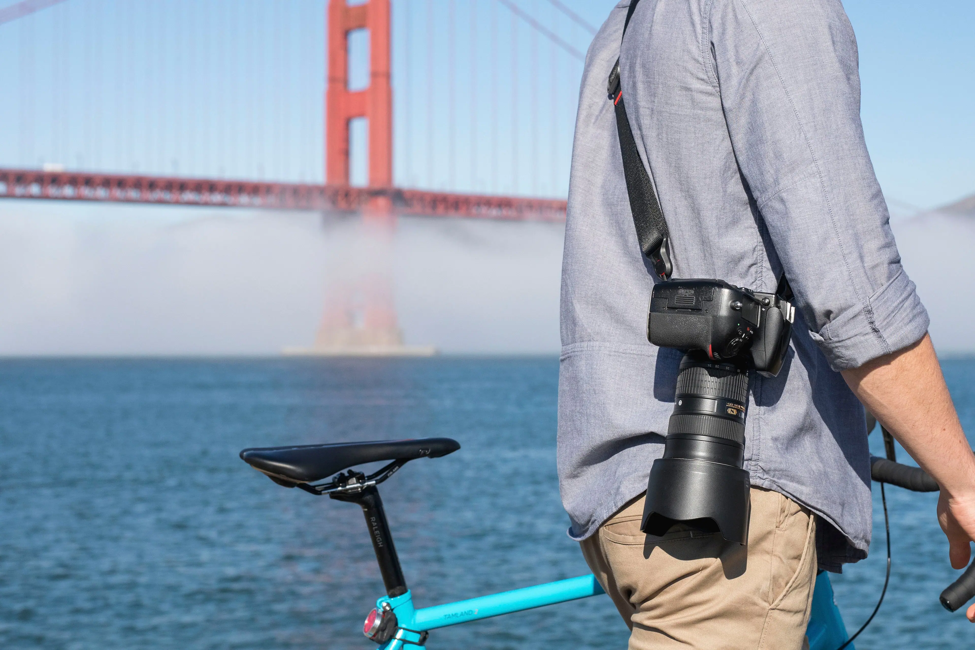 It’s versatile: wear Slide as a sling, neck, or shoulder strap. It’s comfy, yet low-profile, thanks to internally-padded nylon webbing. On one side, the webbing is smooth and glides over clothing. Flip it over, and a silicone grip prevents slippage off your shoulder. Dual quick-adjusters make Slide configurable to any activity. When not shooting, cinch your camera tight to your body to keep it secure while moving about. The crux of it all? Our unique Anchor Link system. Anchors provide instant ultra-strong connection to your camera. Instantly swap Slide between camera bodies, or switch to a different Peak Design strap. Multiple attachment points enable carrying your camera with your lens facing forward or down, making Slide ideal for a huge range of camera/lens setups. Plus, Anchors work with Peak Design tripod plates and many 3rd party plates and L-brackets.
