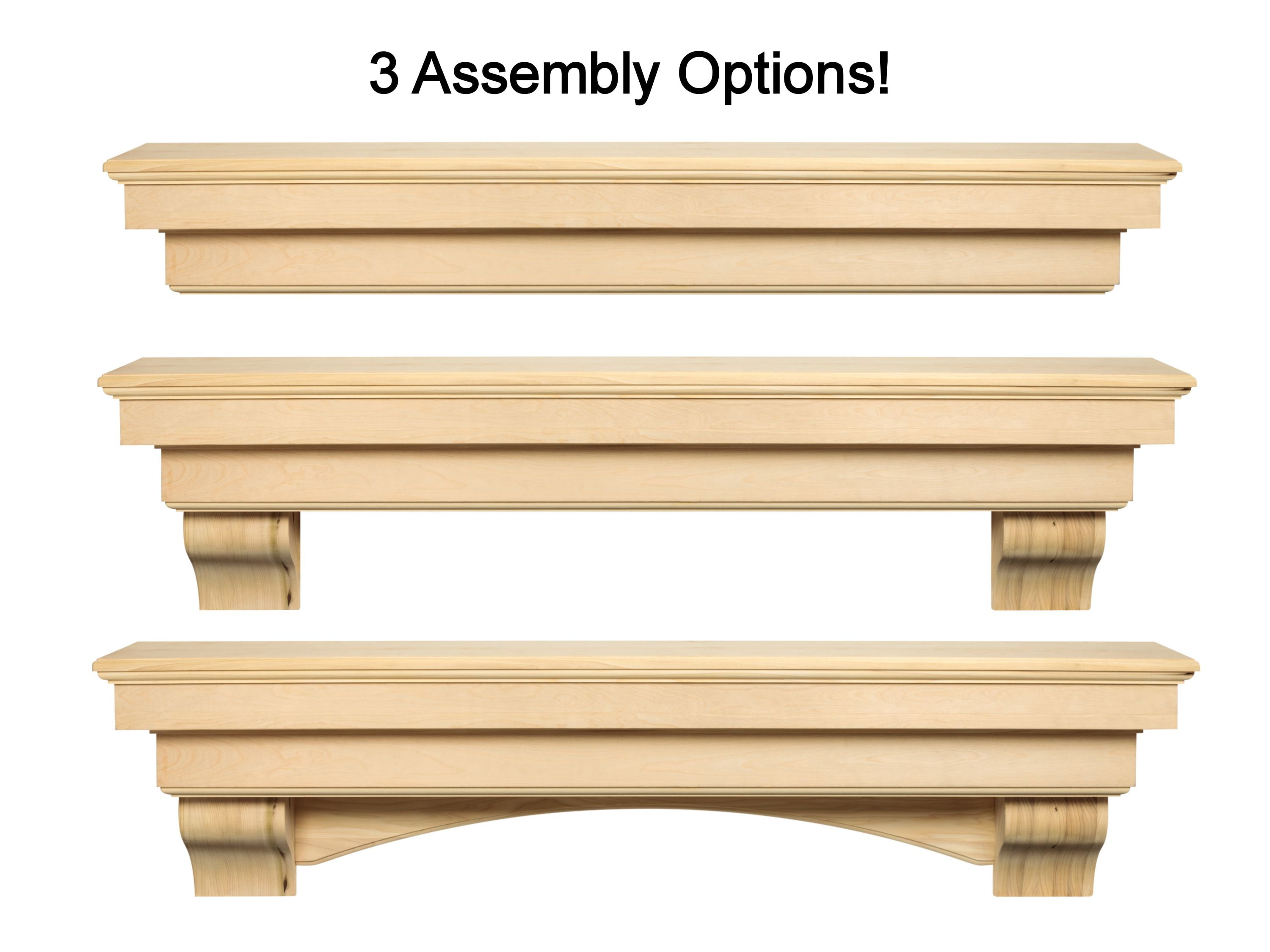 Pearl Mantels Auburn Versatile Premium Wood Mantel Shelf, Unfinished, Paint And Stain Grade, 48″L & 9.5″D, Hang Alone, With Corbels Or With Corbels And Arch (Included)