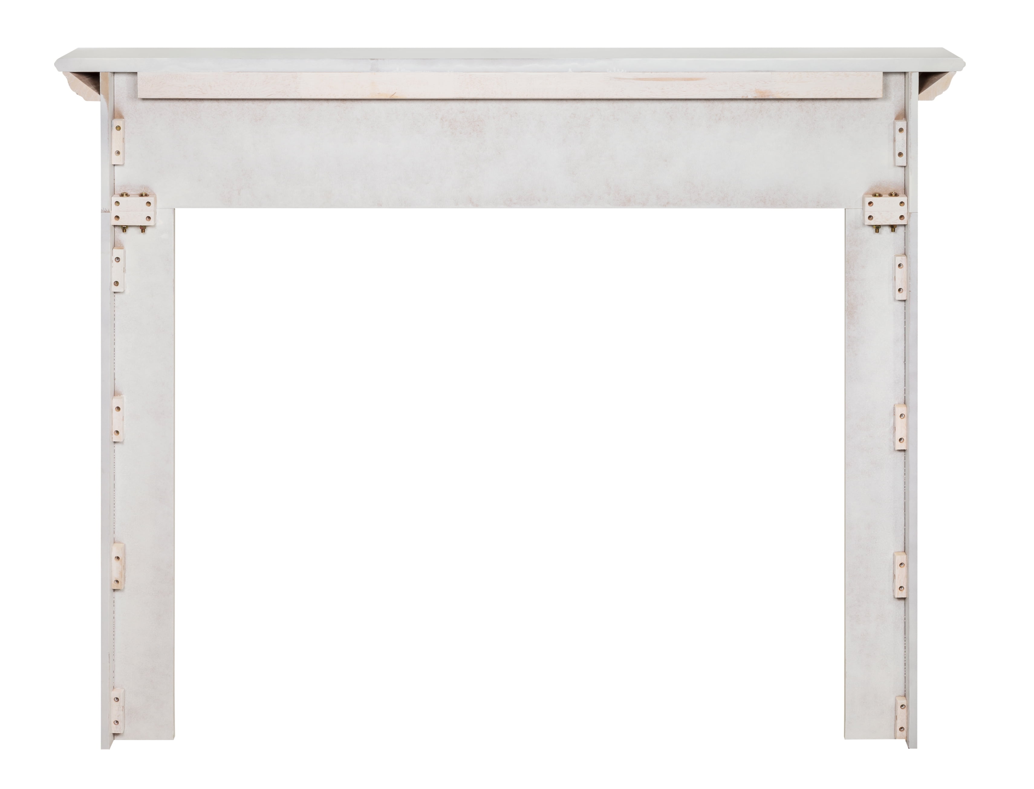 Created from Grade A medium density fiberboard also known as MDF. Mantel ships in 3 pieces; 2 legs and 1 header. The legs attach easily to the header with nuts and bolts. Mitered hanger board assembly included for easy installation as well as a 3 piece mitered scribe molding set to hide any gaps after installation. This mantel has a 1 1/2″ projection off of the wall leaving a nice pocket behind the mantel to accommodate your tile, stone, marble etc. Projection: 1 1/2″ Interior Width: 48″ Interior Height: 40″ Width Outside Leg to Outside Leg at Base: 58″ Shelf Length: 65″ Shelf Depth: 7″ Overall Height: 51″ Weight 46 pounds. Look for the pearl inlay that graces the right hand side of the shelf as proof that you have received an authentic Pearl Mantel. Paint grade only. Comes painted white and ready to install.