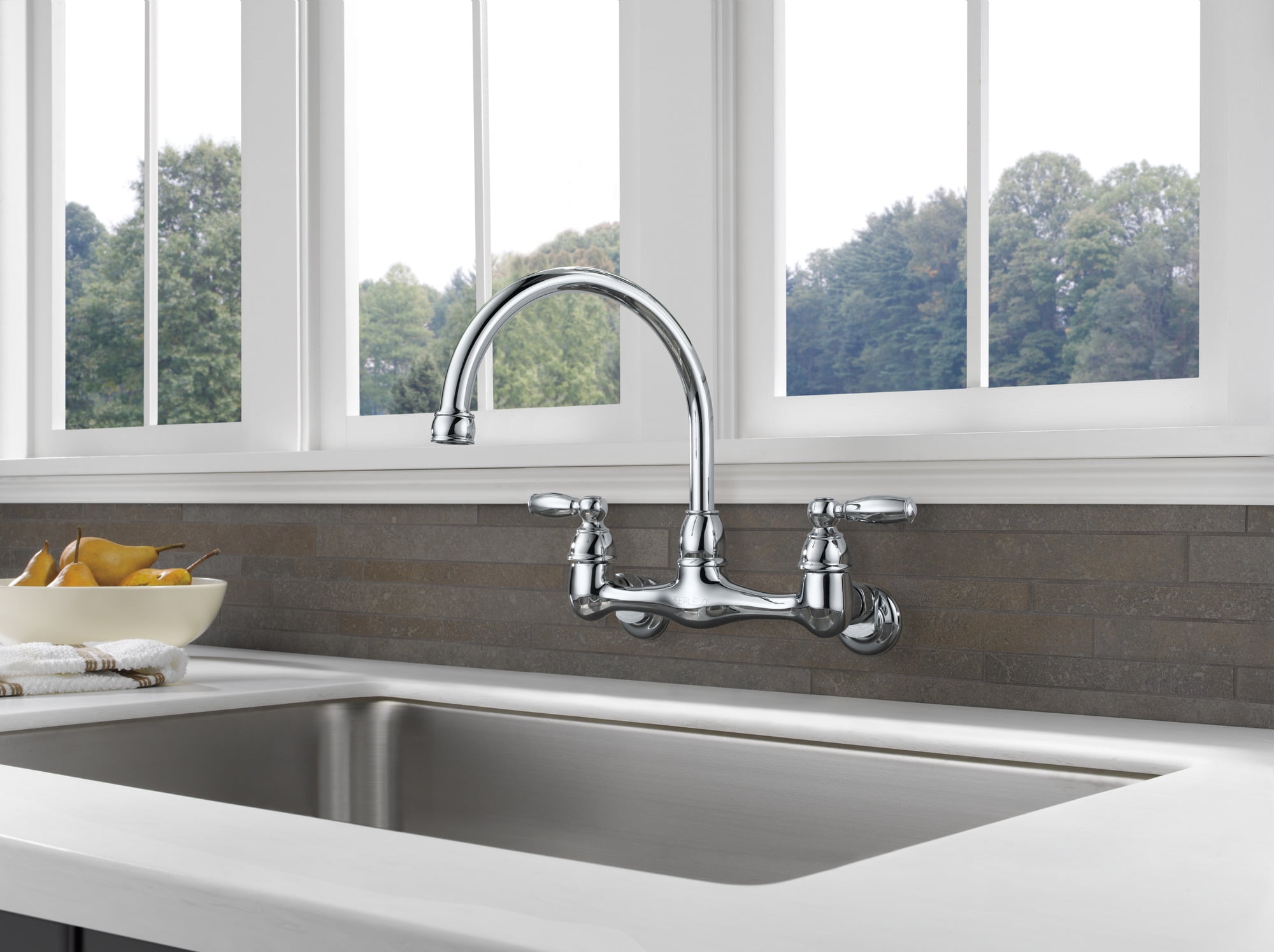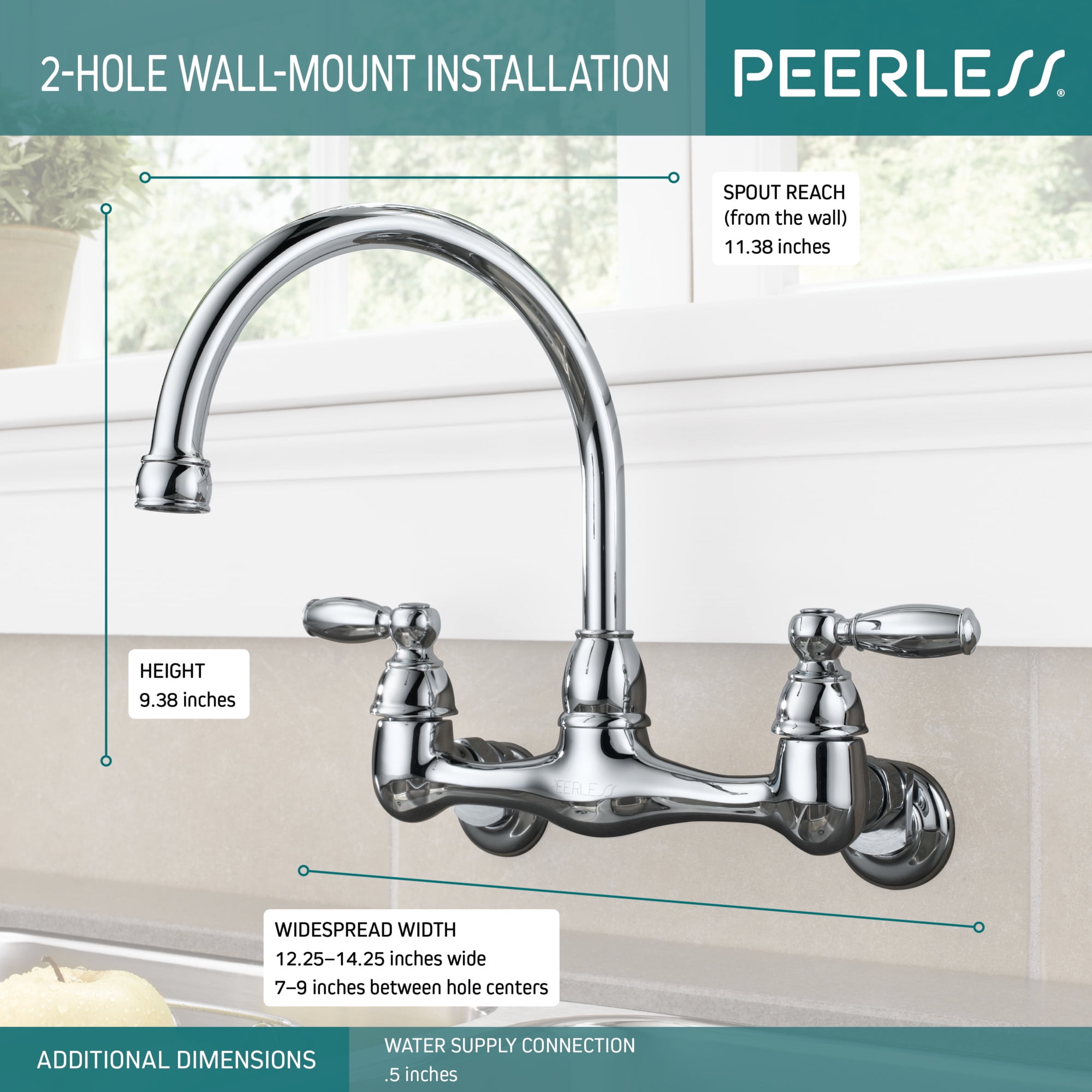 This 2-Handle Wall-Mounted Kitchen Faucet in Chrome is an easy and affordable way to update the look of your kitchen. Its simple design complements a variety of design styles. You can buy with confidence, knowing that Peerless backs this faucet with a Lifetime limited warranty.