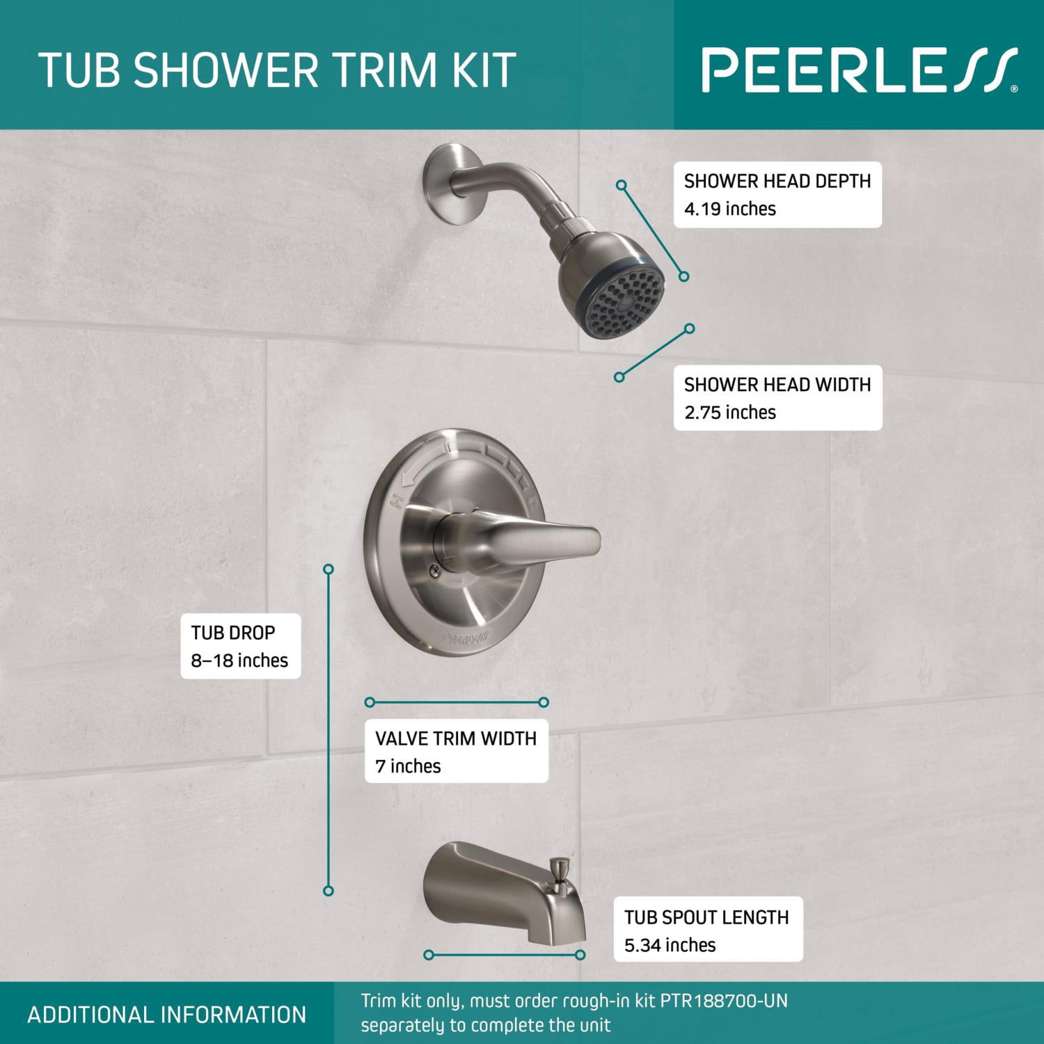Trim kit only Purchase PTR188700-UN Peerless rough valve separately Pressure balance valve keeps water temperature within +/-3° F Single function operation Single lever handle for ease of temperature control