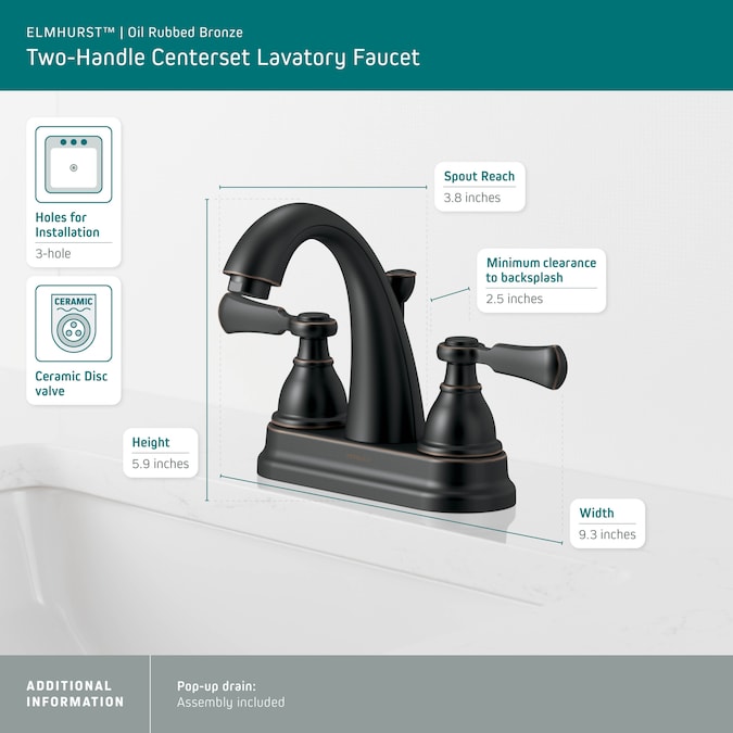 - Includes matching finish 50/50 pop-up drain assembly