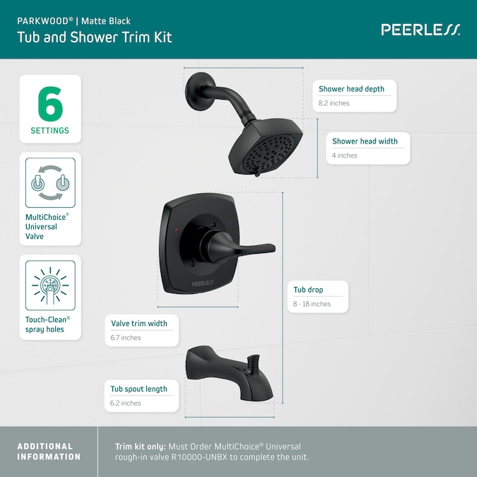 The fresh soft design of the Peerless® Parkwood® Bath Collection lends transitional styling to the bathroom at an attainable price. While other products may gather unsightly mineral buildup over time, Peerless® soft rubber Touch-Clean® spray holes allow any mineral residue to simply be wiped away for an instantly refreshed look – with no need for soaking or the aid of chemical cleaners. The pause setting gives you ample space for shaving, lathering and other shower tasks, then easily restarts the water with the temperature where you left off. Peerless WaterSense® labeled showers use at least 20% less water than the industry standard — helping you save water without sacrificing performance. You can install with confidence, knowing that Peerless products are backed by our Lifetime Limited Warranty.