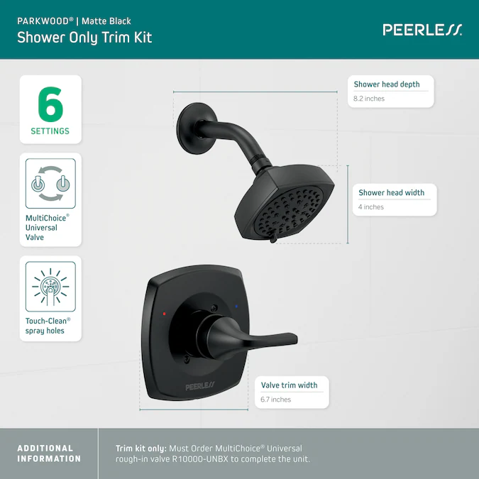 The fresh soft design of the Peerless® Parkwood® Bath Collection lends transitional styling to the bathroom at an attainable price. While other products may gather unsightly mineral buildup over time, Peerless® soft rubber Touch-Clean® spray holes allow any mineral residue to simply be wiped away for an instantly refreshed look – with no need for soaking or the aid of chemical cleaners. The pause setting gives you ample space for shaving, lathering and other shower tasks, then easily restarts the water with the temperature where you left off. Peerless WaterSense® labeled showers use at least 20% less water than the industry standard — helping you save water without sacrificing performance. You can install with confidence, knowing that Peerless products are backed by our Lifetime Limited Warranty.