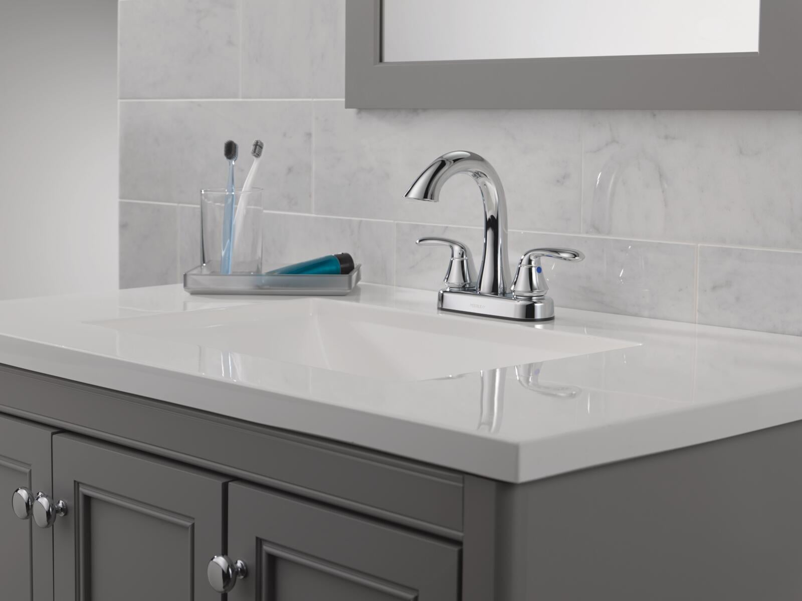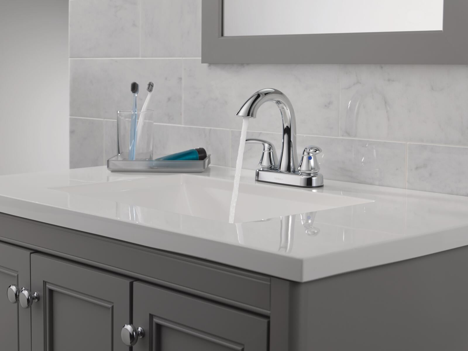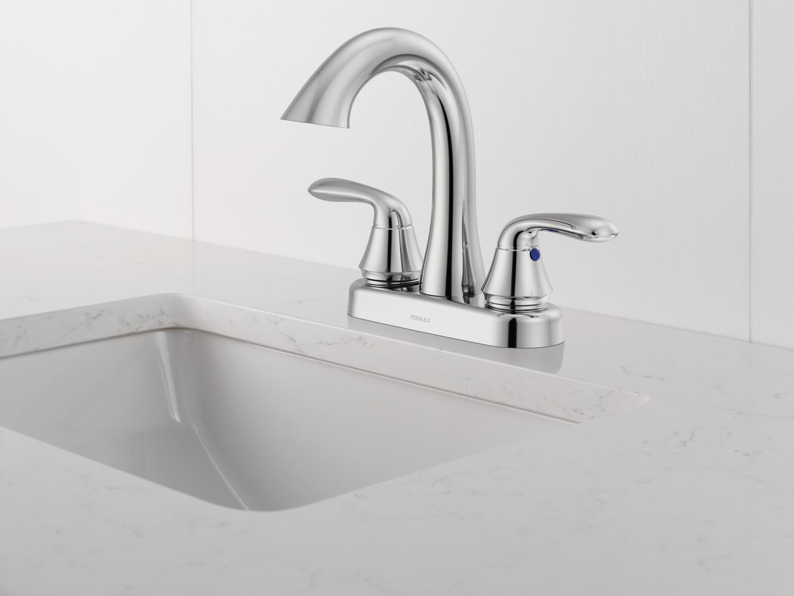 This Peerless® Two Handle Centerset Bathroom Faucet in Chrome is an easy and affordable way to update the look in your bathroom. This faucet is easily installed in 3-hole, 4″ centerset sinks. Peerless WaterSense® faucets help you save water without compromising performance. Peerless faucets are backed by our Lifetime Limited Warranty