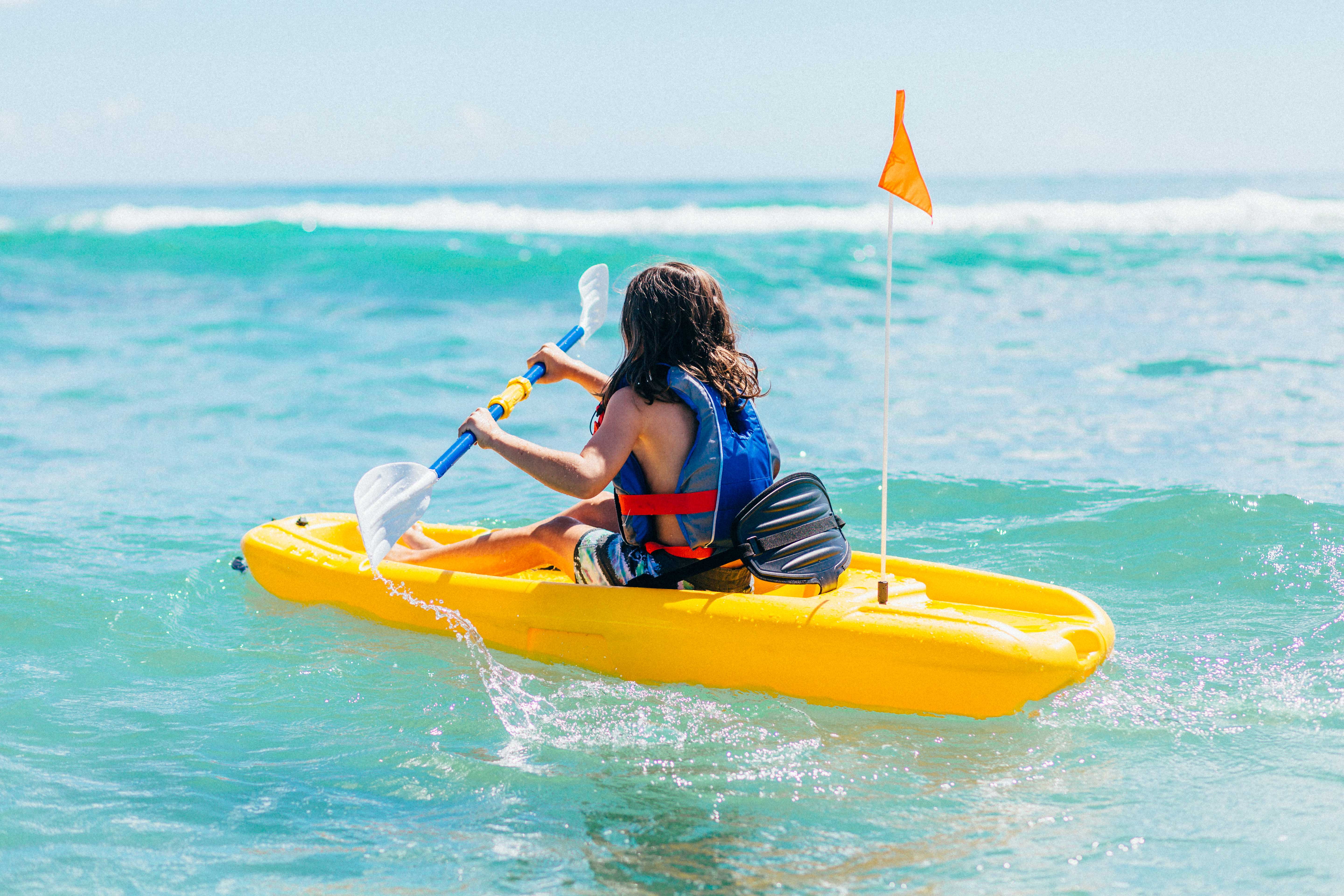 Twin tunnel hull: The twin tunnels’ “V” shape helps reduce the impact of waves on the boat and keep it extremely stable while also creating a bow-down effect that helps the boat turn more easily. Patented RAM-XS™ material: Durable and super lightweight material making this a perfect kayak for young paddlers. Swim-up deck: Stern flat-opened platform with a handle to give kids an easy way to reenter the boat after going for a swim. Included accessories: With the paddle and safety flag included, your little ones just have to grab their Solo and hit the water. Self-bailing design: Designed to allow water to drain out of the boat automatically, which makes the watercraft safer and increase comfort.